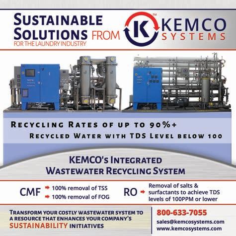 DRYERS – 100 POUNDS OR LESS • Hotel • OPL • Coin Op • Dry Cleaners • Industrial • Commercial • Cruise Industry Dry or Wet Style Filters to Work with “ALL” Dryer Sizes or Multiple Situations, Fiberglass or Stainless and Custom for Unique Situations! Lint Filters Model Big and Small – We’ve got a model for you! In-line Duct” Models – the Lint Lasso and Lint Sock –in production since 2011 All manufacturing done on premise 800-826-1245 www.cleancyclesystems.com • ccsystems@tqind.com LINT COLLECTORS & FILTERS ★ Our In-Line Lint Filter mounts inside, saves space! ★ Fiberglass Wet Filters - 6,000 to 40,000 cfm ★ Fiberglass or Stainless Steel Dry Filters ENERGENICS CORPORATION Talk with our Design and Engineering Staff about your needs. Hundreds Sold Annually. 800-944-1711 www.energenics.com CARTS, TRUCKS & BASKETS Energenics Corp., Kartwasher 1470 Don St., Naples, FL 34104 800-944-1711 www.energenics.com CART-WASHING SYSTEMS Sani Wash - McClure Industries, Inc. 9051 SE 55th Ave., Portland, OR 97206 800-752-2821 www.mcclureindustries.com, info@mcclureindustries.com DRYER BOOSTER & EXHAUST FANS ENVIRONMENTAL SOLUTIONS www.olekbelts.com 1-800-869-2683 Free www.olekbelts.com We’re your flatwork finishing and conveying O.E.M. Belt Match H.Q. Get the real thing for a Lot less $$$. O.E.M. Needlefelt Ironer Pads too! Better Belts, Better Prices, Better Service Visit our Website or Call 1-800-869-2683 For free, no obligation, price quotations and for your Free copy of our Product Catalog with over 40 samples. Ironer pads, covers, aprons, guide tapes, carts, slings, cleaners, waxes & more… • Wash Temperature Reduction • Tunnel Washer Experts • EPA Regulations • Environmental Concerns • Infection Control • Waste Water Treatment New Horizons In Ozone Solutions, Inc 508-831-4229 wet-tech.com FLATWORK SUPPORT Choose your favorite low-cut front for ergonomic access, roll safe and easy on advanced poly base with premium casters—all included as standard. Easy Reach, Easy Roll Call 800.829.4535 or visit MODRoto.com for a FREE QUOTE. 72P 72N Leadership in Every Cart