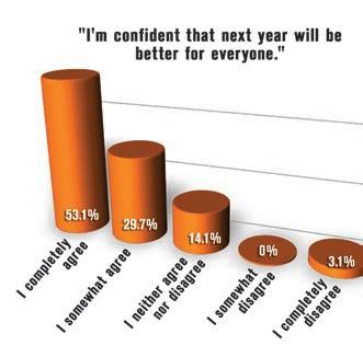 The statement, “I’m confident that next year will be better for everyone,” generated overwhelmingly positive responses from respondents, with 53.1% completely agreeing and almost 30% agreeing somewhat. Only 3.1% completely disagreed with the statement, while 14.1% answered, “I neither agree nor disagree.”