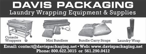 Classified Advertising PARTS FOR SALE EQUIPMENT FOR SALE AMKO AMERICA, INC. Remanufactured Finishing Equipment Delta Ironers, Omega Folders & Towel Folders PARTS, IRONER SUPPLIES & NEW EQUIPMENT ALSO AVAILABLE “NEW” SELF CONTAINED IRONERS Contact: (561) 863-9696 AmkoAmerica@yahoo.com POSITIONS AVAILABLE POSITIONS AVAILABLE DISTRIBUTOR OFFERINGS www.ineedjpequipment.com 800/925-3236 EQUIPMENT FOR SALE: • Rennco CF4000 Single Lane Bar Towel Bagger, 2009 • 400lb Braun OP W/E, 1996, Single motor drive • 250lb Jensen OP, ready to ship • 2005 Chicago Air • 900lb Ellis, 1998 • 400lb Challenge Dryer, Gas, P/T, 1998 & 1995 • Chicago Tristar 32 + Chicago Fastrack • Chicago Tristar 24 PCS w/OPL • Chicago Imperial Ironer, IMP36, Gas, 2001 • 900lb Ellis Completely Reconditioned, New controls by Ellis • 150lb Lavatec Press, LP582, 2001 • Economizers for 50HP and 70HP Boiler • 50HP Parker Boiler, 2005 • Chicago Edge 2000 • 60lb Milnor Washer Rigid-mount, 2006 • Chicago Pik Quik, 2008 “Expect Excellence” JP Equipment, Inc. buys and sells used industrial laundry equipment. We have been in the used industrial laundry business since 1998 and sell equipment worldwide. What separates us from most of our competitors is that we own almost all of our equipment outright giving us the flexibility to sell equipment “as is”, cleaned and tested, or fully reconditioned. We also sell equipment on consignment. We provide unparalleled service whether you are buying or selling equipment, building a new laundry or upgrading an existing facility. Call Craig Lloyd toll free at 877.295.5693 between 9 a.m. – 9 p.m. EST. Please visit www.laundrycareers.com to review current industrial/institutional laundry management openings. ADVANCE YOUR CAREER The Griffin Group, Inc. “Recruitment Specialist” Need to FILL a position? Call Deana Griffin 888-235-2365 www.thegriffingroup.cc deana@thegriffingroup.cc ® QTY DESCRIPTION 1 Edge Spreader 2000 1 Pik-Quik Sheet Separator Milnor Washers; 60lb, 100lb, and 140lb Rebuilt 1 Mini Neptune 1 Unipress Single Buck Lightning Shirt Unit 1 450lb Washex Open Pocket 2002 1 275lb Milnor Open Pocket Rebuilt 2003 1 Single Lane Skyline Folder 1 Braun 2 Roll 32 Steam Ironer 1 Braun Omege 2-Lane / Crossfolder w/Accumulator 1 Braun Rear Discharge Towel Folder 1 Milnor 120lb Steam Dryer 1 Braun Rear Discharge Towel Folder 1 Reconditioned Jensen Ultima 36 – 2-Roll Steam Ironer 1 Reconditioned Challenge Pacesetter 1 Forenta 2013 Single Buck, Sleever and Collar Cuff For Pricing call Ron Hirsch 516.938.4300 • 516.315.7426 Hicksville, NY • www.directmachinery.com FOR NEW OR USED LAUNDRY EQUIPMENT, DM IS YOUR SOURCE FOR ALL YOUR NEEDS HOSPITAL LAUNDRY CLOSING EXCELLENT EXCELLENT CONDITION Stanco Industries, Inc. Serving The Textile Trades Since 1970 800-932-3769 k for Mike or Deb KEEPING IT GREEN SINCE 1970 WE ARE LOOKING FOR THE FOLLOWING EQUIPMENT: WASHING • DRYING • FOLDING FEEDING • IRONING • FINISHING MATERIAL HANDLING • BOILERS CONTINUOUS BATCH WASHING STACKERS • CART DUMPERS DON’T BE LEFT WITHOUT POWER Emergency Generators Available 50KW to 1000KW Natural Gas & Diesel Stanco Industries, Inc. 800-932-3769 Ask for Mike or Deb or e-mail: stanco2626@aol.com www.StanCoInd.com