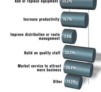 Close to 17% of survey takers are looking to “increase productivity,” and 7.4% want to “improve distribution or route management.”