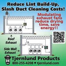 30 NOVEMBER 2017 | AMERICAN LAUNDRY NEWS www.AmericanLaundryNews.com Source Directory A convenient guide to sources of products and services FLATWORK IRONERS FLATWORK IRONERS Knowhow In Action Your Tingue rep is a fully trained master of finishing equipment operation, maintenance and installation. Call for: • Pads, covers, belts, waxes, tapes and more • Carts, trucks, baskets and bags • Parts, rebuilds and repairs 800.829.3864 www.Tingue.com MODRoto.com TBR-Associates.com C & W EQUIPMENT (800) 443-3573 FLATWORK IRONER SPECIALISTS REMANUFACTURED IRONERS: Super Sylon Sylon Hypro’s Super Pro Jensen SS700 SS800 Ultima Lavatec UPGRADE KITS: Chain Drive Conversion Vacuum Systems Herringbone Conversion Canopies Inverters Side Covers Roll Springs Jensen Drives SUPPLIES: Aprons Pads Covers Belts Waxes Cleaners PARTS/REPAIRS: All Brands New/Refurbished/Hard to Find COMMITTED TO EXCELLENCE Your friendly Rep can help with: • Pads, Covers, Wax Cloths, Cleaning Supplies • Rebuilding your ironer • Parts, Sales, Service, Rigging (602) 253-9687 • www.azsle.com The Flatwork Ironer Specialists Pellerin Milnor Corp. P.O. Box 400, Kenner, LA 70063 504-467-9591, Fax: 504-468-3094 www.milnor.com DRYERS – 100 POUNDS OR MORE Pellerin Milnor Corp. P.O. Box 400, Kenner, LA 70063 504-467-9591, Fax: 504-468-3094 www.milnor.com CLEAN CYCLE SYSTEMS 960 Crossroads Blvd., Seguin, TX, 78155 800-826-1245 • CCsystems@tqind.com www.cleancyclesystems.com DRYERS – 100 POUNDS OR LESS LINT COLLECTORS & FILTERS MAT ROLLERS DRYER BOOSTER & EXHAUST FANS www.energenics.com ENERGENICS CORPORATION TALK TO OUR DESIGN AND ENGINEERING STAFF ABOUT YOUR NEEDS 1470 Don St. • Naples, FL 34104 • 800-944-1711 ›› Our In-Line Lint Filter mounts inside, saves space! ›› OPL Duct Mounted Lint Filters 1,000 to 2,700 CFM ›› Fiberglass or Stainless Steel Dry Filters ›› Hundreds Sold Annually Source Directory listings in American Laundry News are sold on an annual basis at the following rates: All Major Credit Cards Accepted 2017 Listings Regular Boldface All Caps Four Line Listing per Year $890 $1,115 $1,115 Display and additional line rates available upon request HEALTH CARE LINEN TRANSPORT CARTS “In-House” or “Over-The-Road Transport” Ergonomic Aluminum - Tough Fiberglass – Ultimate Stainless ALL SIZES & CUSTOM C APABILITIES 800-826-1245 | www.tqind.com | TQcarts@TQind.com America’s #1 Trusted Source Since 1961! HEALTHCARE LINEN TRANSPORTS CART-WASHING SYSTEMS www.energenics.com ENERGENICS KARTWASHERS FULLY AUTOMATIC KARTWASHER PREMIER W/TOUCHPAD 1470 Don St. • Naples, FL 34104 • 800-944-1711 Designed to wash and sanitize all popular laundry carts • Automatic two minute cycle • Dries and sanitizes • Minimum water useage Concentrates wash effectiveness on the cart interior Fast automatic washing, sanitizing and drying insure optimum cleaning • 15 second detergent wash and sanitizing rinse cycle • Adjustable automotive car wash style drying 1116aln_Energenics Cart Washers SD.indd 1 9/27/16 3:30 PM What Every Laundry Needs In A Cart Washer: M c C LURE INDUSTRIES, INC email: kim@mcclureindustries.com 800-752-2821 • www.mcclureindustries.com A cart washer that works continuously for 15-20 years. The ability to install your cart washer in a cross-contamination barrier wall. A cart washer that really, truly cleans each cart of bio-contaminents inside and out. One that uses existing utilities no remodel costs. Time selectable efficient cycles that use a minimum amount of water. FEEDER AND FOLDER BELTS www.superiorbands.com 1-800-227-2906 Sales@superiorbands.com Feeder/Folder Belts Superior Bands, Inc. Buy Direct OPL-Series DLF-500 Lint Lasso 1,000-10,000 CFM Established: 1991 4,000-35,000 CFM Established: 1985 4” to 18” Duct Established: 2011 www.cleancyclesystems.com • 800 . 992 . 0697