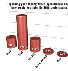 Almost 60% of respondents answered “good” to the question, “Regarding your laundry/linen operation/business, how would you rate its 2019 performance?” Just over 18% indicate performance for the year was “great,” while 21% say it was “average.”