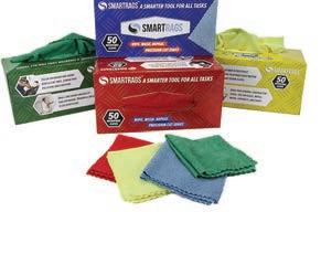 SmartRags dispenser box contains 50 12”x12” microfiber cloths with precision cut seamless edges. Color-coding reduces the threat (and perception) of cross-contamination. Smaller and more compact than regular microfiber cloths, SmartRags are ideal for utility carts, corporate supply rooms, automotive shops, and break rooms.