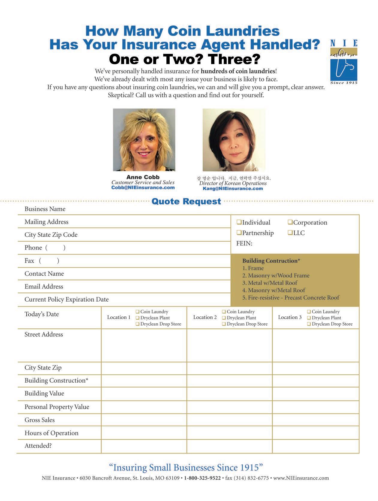 POSTMASTER, Send changes of address and form 3579 to American Coin-Op, Subscription Dept., 125 Schelter Rd., #350, Lincolnshire, IL 60069-3666. Volume 64, number 8. Editorial, executive and advertising offices are at 650 West Lake Street, Suite 320, Chicago, IL 60661. Charles Thompson, President and Publisher. American Coin-Op is distributed selectively to owners, operators and managers of chain and individually owned coin-operated laundry establishments in the United States. The publisher reserves the right to reject any advertising for any reason.