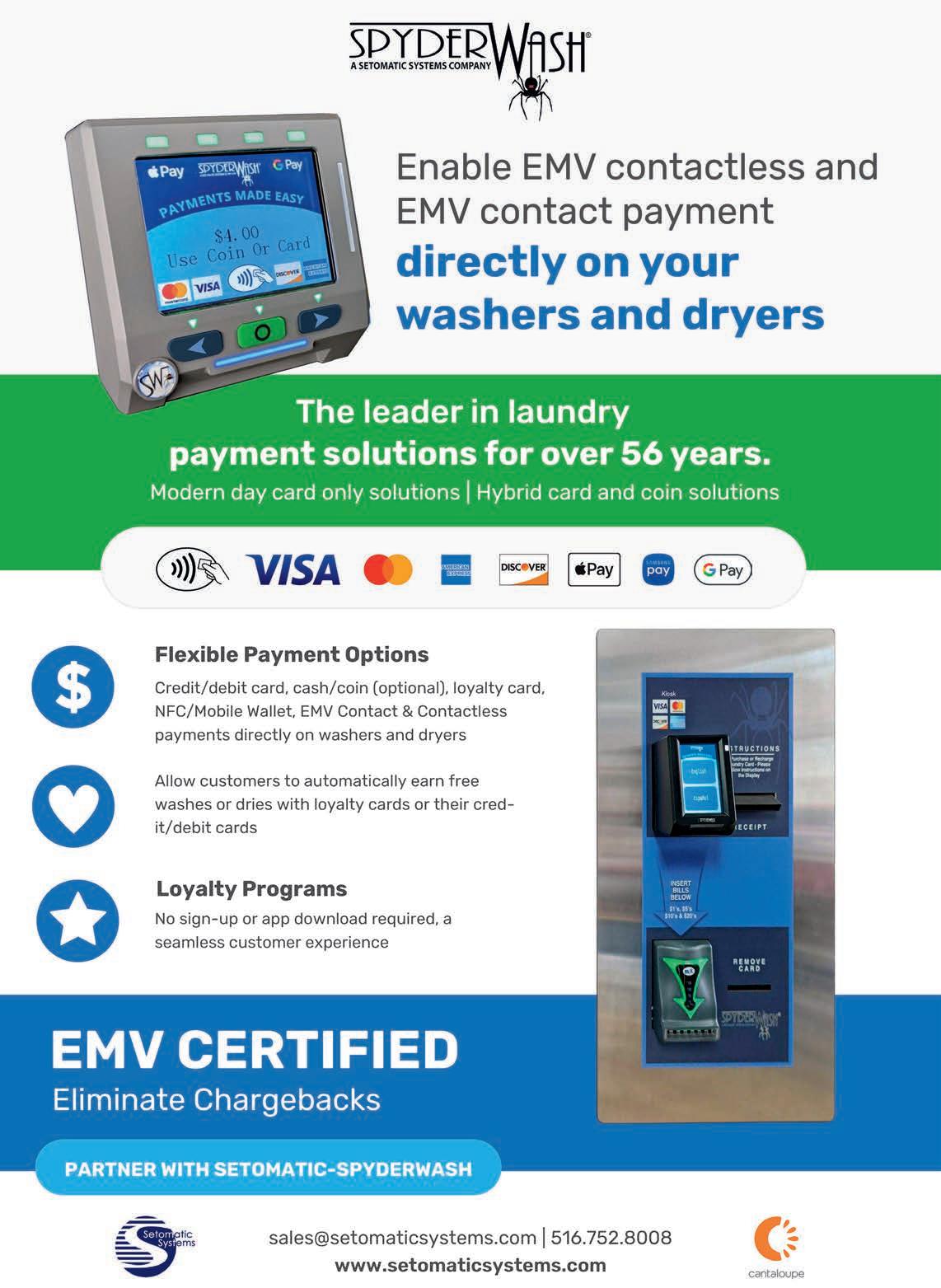 312-361-1700 American Coin-Op (ISSN 0092-2811) is published monthly. Subscription prices, payment in advance: U.S., 1 year $50.00; 2 years $100.00. Single copies $10.00 for U.S. Published by American Trade Magazines LLC, 650 West Lake Street, Suite 320, Chicago, IL 60661. Periodicals postage paid at Chicago, IL and at additional mailing offices. POSTMASTER, Send changes of address and form 3579 to American Coin-Op, Subscription Dept., 125 Schelter Rd., #350, Lincolnshire, IL 60069-3666. Volume 65, number 3. Editorial, executive and advertising offices are at 650 West Lake Street, Suite 320, Chicago, IL 60661. Charles Thompson, President and Publisher. American Coin-Op is distributed selectively to owners, operators and managers of chain and individually owned coin-operated laundry establishments in the United States. The publisher reserves the right to reject any advertising for any reason. © Copyright AMERICAN TRADE MAGAZINES LLC, 2024. Printed in U.S.A. No part of this publication may be transmitted or reproduced in any form, electronic or mechanical, without written permission from the publisher or his representative. American Coin-Op does not endorse, recommend or guarantee any article, product, service or information found within. Opinions expressed are those of the writers and do not necessarily reflect the views of American Coin-Op or its staff. While precautions have been taken to ensure the accuracy of the magazine’s contents at time of publication, neither the editors, publishers nor its agents can accept responsibility for damages or injury which may arise therefrom.
