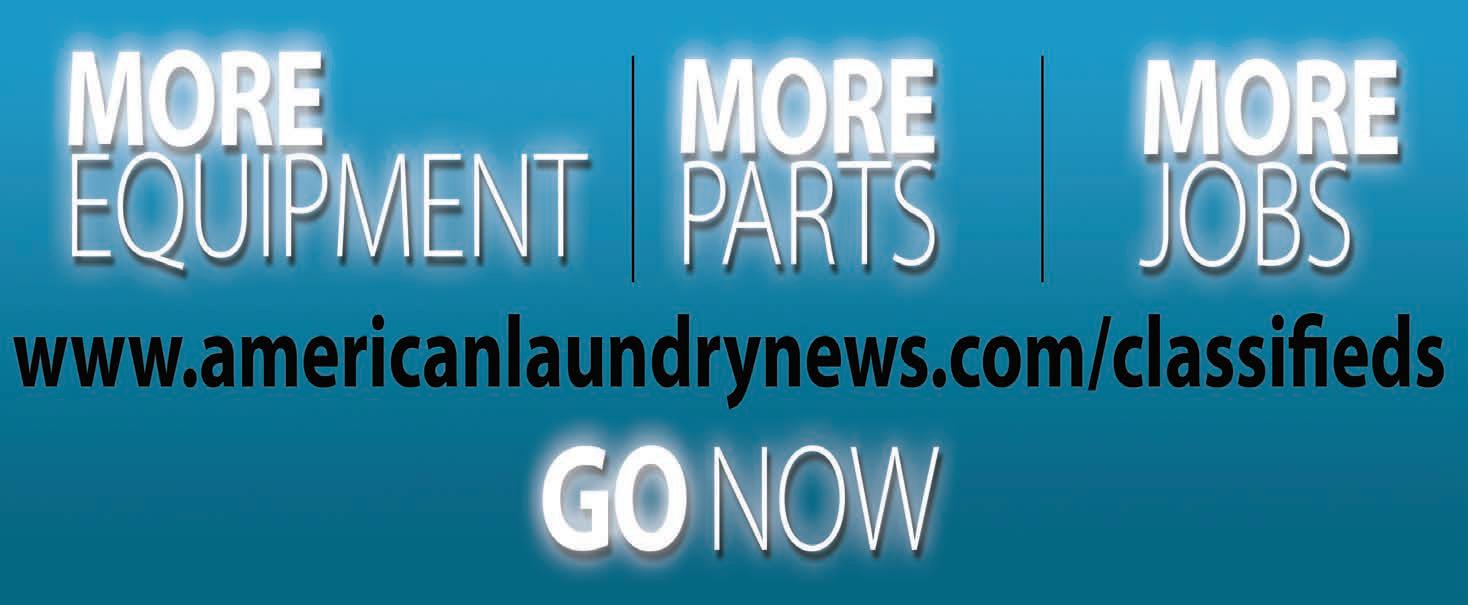 mechanical, without written permission from the publisher or his representative. American Laundry News does not endorse, recommend or guarantee any article, product, service or information found within. Opinions expressed are those of the writers and do not necessarily reflect the views of American Laundry News or its staff. While precautions have been taken to ensure the accuracy of the magazine’s contents at time of publication, neither the editors, publishers nor its agents can accept responsibility for damages or injury which may arise therefrom.
