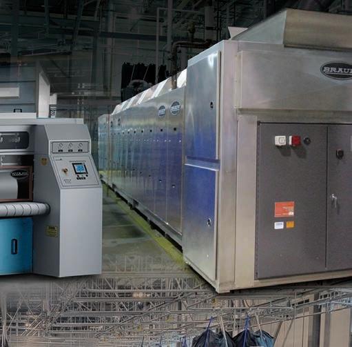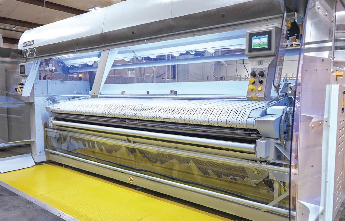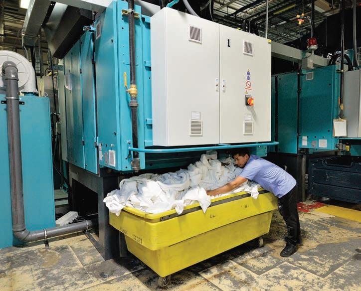 The facility utilizes one, sixmodule (220 pounds) tunnel washer with seven dryers, one 14-module (105 pounds) tunnel washer with six dryers, two 165pound extractors with two dryers and two 65-pound extractors with two dryers.