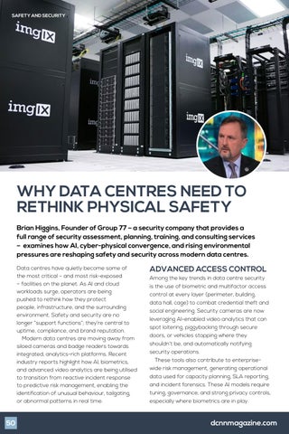 50 Brian Higgins of Group 77 examines how AI, cyber-physical convergence, and rising environmental pressures are reshaping safety and security across modern data centres