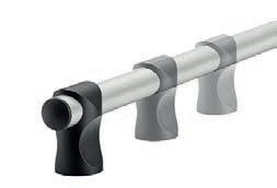 Griffsteg aus Edelstahlrohr ø 30 x 1,5 mm, Werkstoff-Nr. 1.4301, feingeschliffen. Drucktastergehäuse aus Aluminium AlMgSi 0,5; schwarz eloxiert. Griffschenkel aus Polyamid PA 6, schwarz mit Feinstruktur.