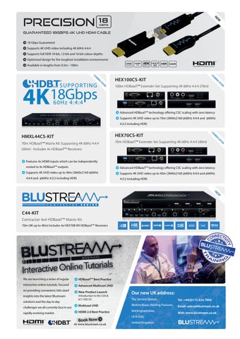 J 18 Gbps Guaranteed J Supports 4K UHD video including 4K 60Hz 4:4:4 J Supports full HDR 10-bit, 12-bit and 16-bit colour depths J Optimised design for the toughest installation environments J Available in lengths from 0.5m - 100m