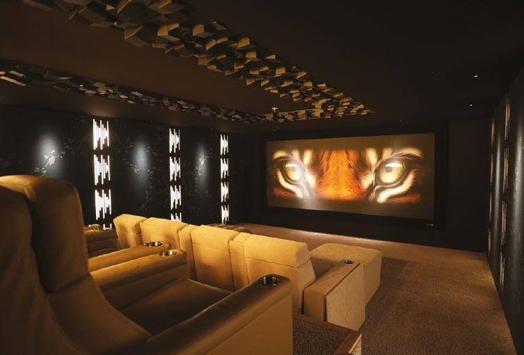 IndigoZest facilitated the design and installation of the cinema system, introducing McIntosh and Sonus faber to ensure referencelevel performance. The audio setup includes three Sonus faber Palladio PC-664 and two Palladio PC-664P in-wall loudspeakers, paired with two GRAVIS II subwoofers. McIntosh’s MHT300 Home Theatre Receiver powers the system, delivering a fully immersive audio experience.
