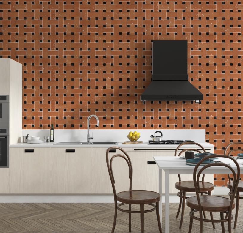 Terracotta & Nero marquina 7 9/16´´ x 7 9/16´´ interlocking sheet
