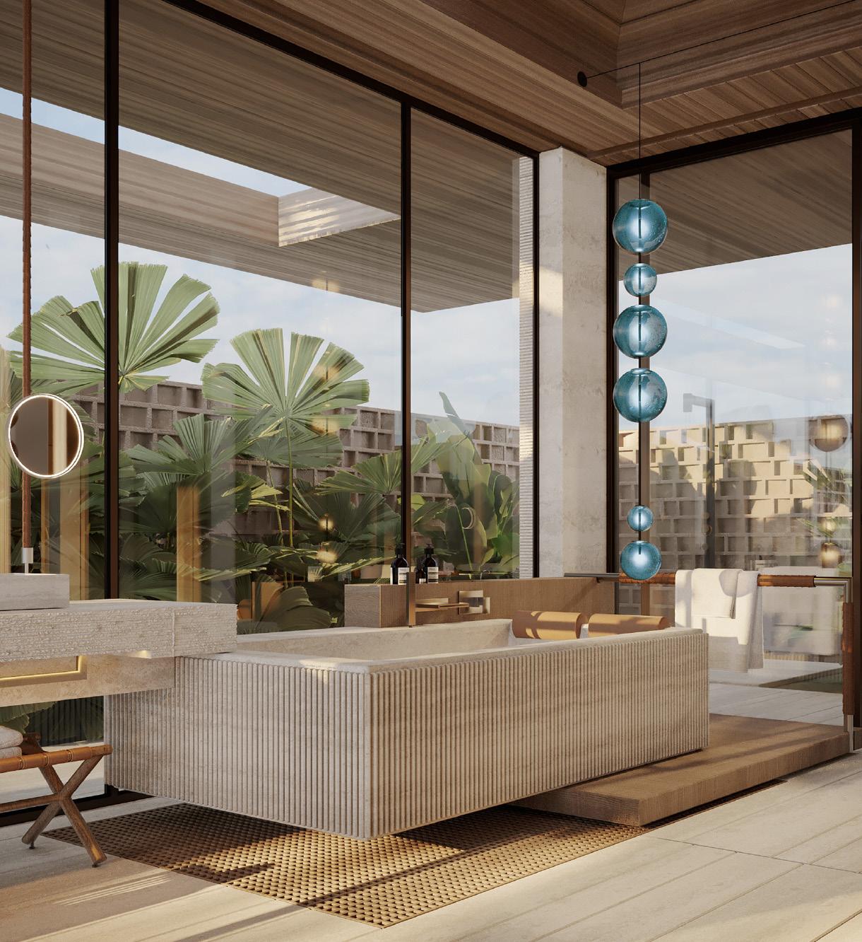 A landmark of design and serenity, the Wellness Spa rises from the water in the elegant form of a fish - a symbol of flow, transformation, and life. Within its sculpted curves lies a sanctuary dedicated to balance and renewal. Light, texture, and scent weave through each space, guiding guests on a journey of restoration.