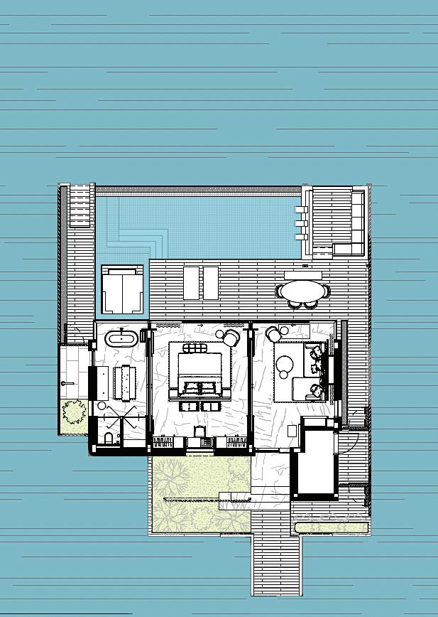 Immerse yourself in the whimsical allure of our onebedroom water villas, gracefully poised above the azure waters with 279 square meter of luxurious space.