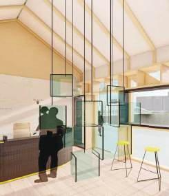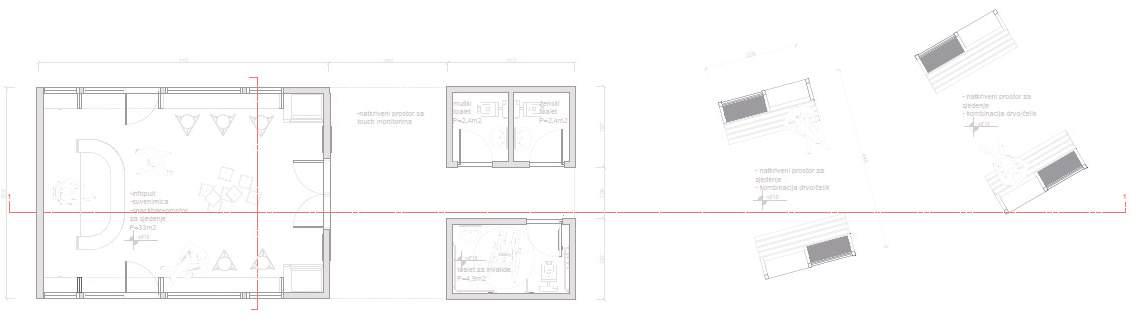 The design task envisages the design of the cafeteria faculty It is planned on the third floor of the Faculty of Architecture in Sarajevo. Observing the entire third floor, the cafeteria is located in a good place This floor has the highest concentration of students It is necessary to place the corridor and the terrace next to the canteen While designing, the multifunctionality of the space was put into consideration The space is connected to the central hall and the existing passage is widened. A unique space has been designed which is a gathering place for both students and professors, and thus it is representative in the whole building The design combines work, rest and dining