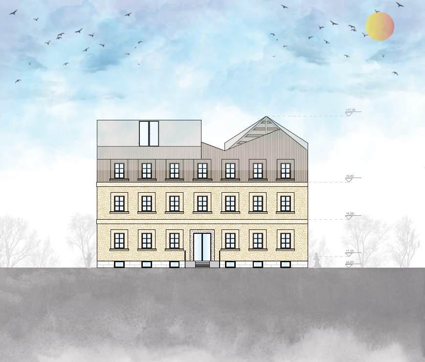 The building is located in Travnik It is an existing building from the Austro-Hungarian empire The main focus was the adaptation and restoration with the intention of taking care of the heritage. The concept is focusing on the roof, because it is the roof that represents the biggest change on the object itself The object is a national monument, and by adding this kind of roof structure, the building gets a new identity, and would be recognizable as such, becoming a new attraction in the city of Travnik. No major changes were made on the facade, new openings were placed in positions of the old ones, as well as cornices on the facade, together with new facade cladding, and similar color as on the old facade, an attempt was made to respect the mentioned identity of the object The idea for this kind of roof was taken from several sources, primarily from houses that are characteristic mainly with their four-bay roofs with steep eaves that can be found in several Travnik settlements Additional inspiration was found because of the mountain Vlašić that Travnik is surrounded by.