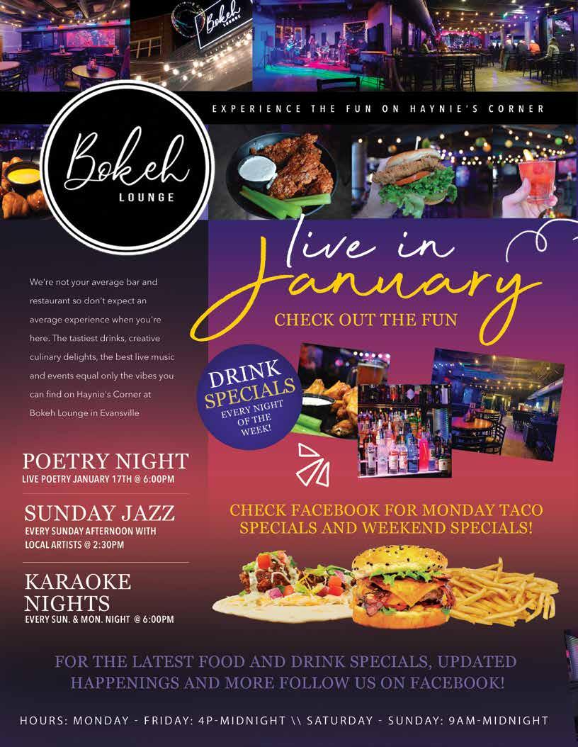 Haynie's Corner in downtown Evansville simply wouldn't be the same without this spacious, arts-friendly bar where you can catch the area's best bands on Fridays and Saturdays, enjoy Sunday jazz performances, karaoke and poetry nights and live painting on stage. Plus, there's two patios primed for beer drinking and more, lunch and dinner specials and Bokeh's irresistible weekend brunch.
