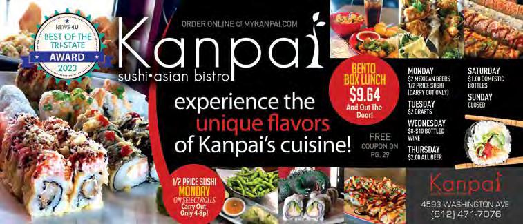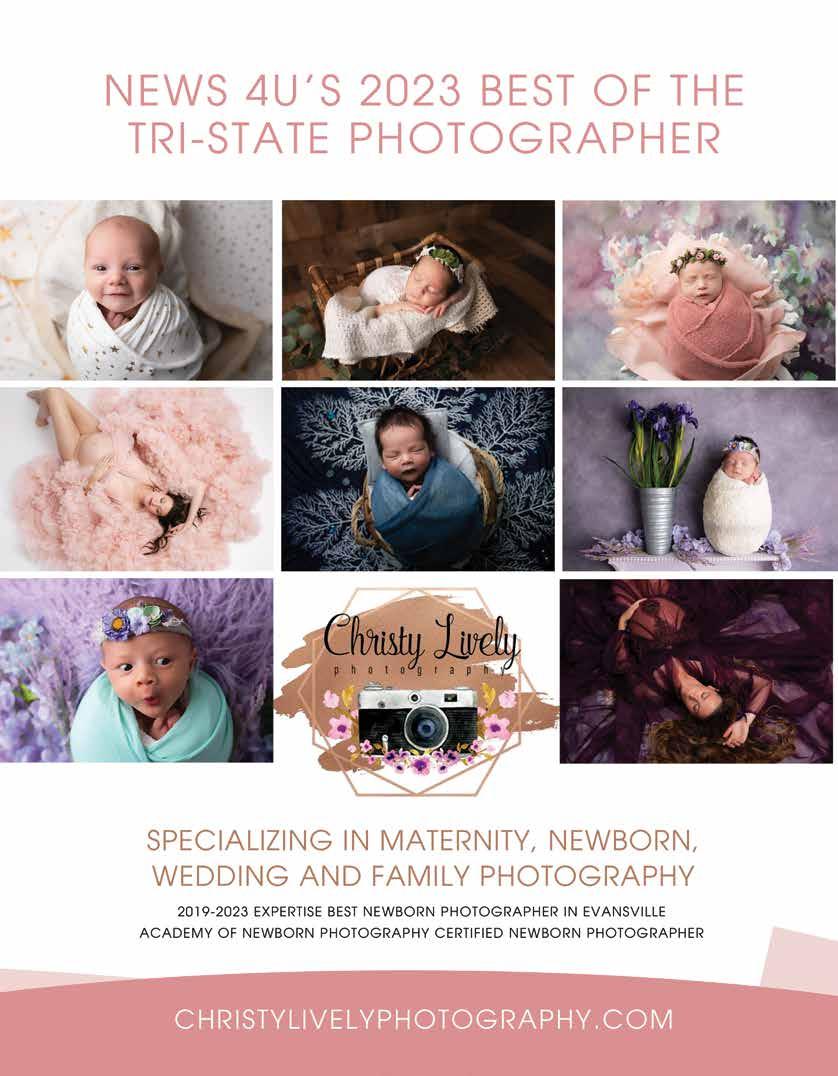 News 4U is published monthly and is distributed throughout the tri-state. For information about advertising, subscriptions, distribution or guides & lists, call (812) 426-6398 or write us at 125 N Weinbach Ave, Ste 510 Evansville, IN 47711. News 4U is published by EMG Publishing. All rights reserved. Reproduction without permission is strictly prohibited. Distribution of the magazine does not necessarily constitute endorsement of products, services or opinions within. Advertisers are responsible for content of their ads.
