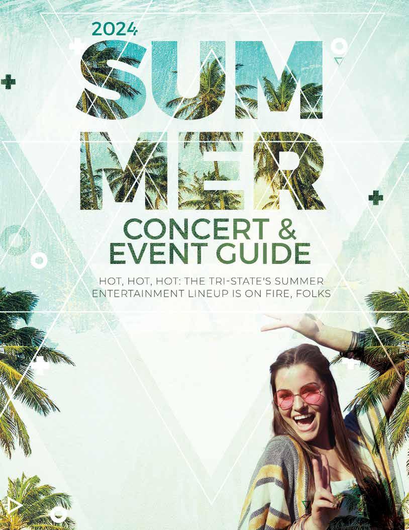 Our neck of the woods continues to be a hot-spot for live music and big laughs with nationallyknown bands and comedians making sure to add us to their tour itineraries. In fact, there are so many high-profile shows headed our way this summer that we felt compelled to map it all out and help you get a jump on securing your seats as tickets will definitely go fast for many of the performances listed on the following pages. Some examples? Well, country stars Jason Aldean, Big & Rich, Jamey Johnson and Justin Moore for starters. Then you've got rock legends like Ace Frehley and hair metal heroes such as Tesla and Winger. And R&B legends Keith Sweat and Nelly. And boy band favorites including Chris Kirkpatrick of *NSYNC and O-Town. On the comedy tip, we're talking Brian Regan and Jim Breuer - both stand-up powerhouses. We could go on and on, but just do yourself a favor and check out the 2024 Summer Concert & Event Guide for all the upcoming entertainment opportunities. Enjoy!