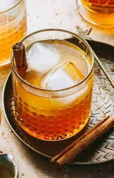 1. In a cocktail glass, combine bourbon, orange liquor, maple syrup, cinnamon sugar, and apple cider.