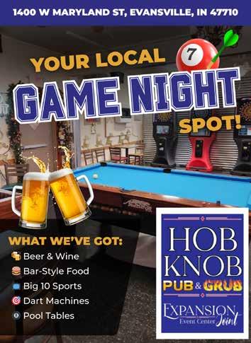 1007 Parrett St., Evansville, IN • (812) 909-0388 facebook.com/BokehLounge/ Karaoke with DJ Nathan on Sunday and Monday Nights @ 6:00pm The Oxford Comma Trivia every Tuesday @ 7:00pm