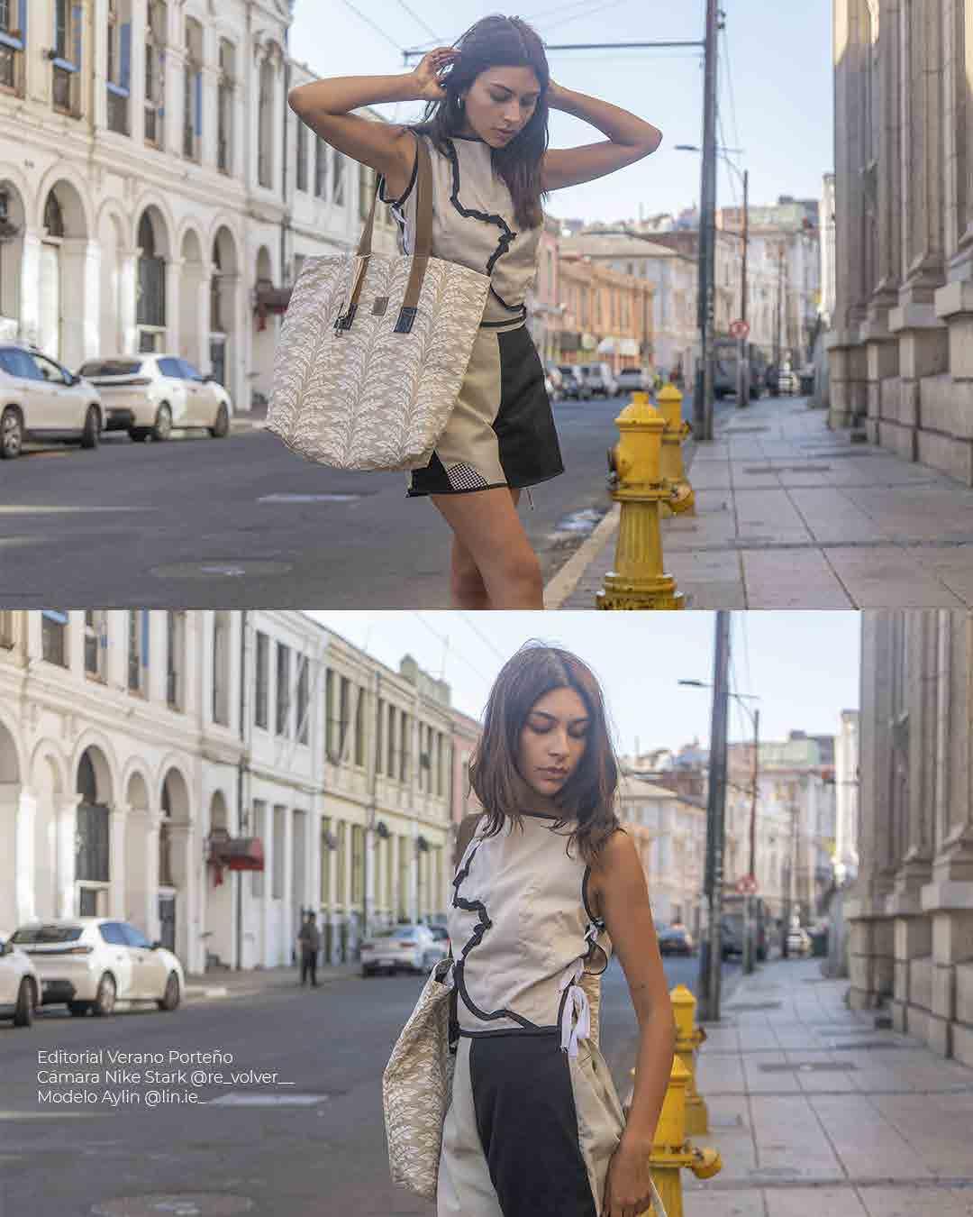 “El futuro debe ser sustentable,” con esa frase como punto de partida se desarrolla la Editorial Avenida Argentina, que busca contrastar la vida cotidiana, un día miércoles de feria, en la ciudad puerto de Valparaíso, y el upcycling. Editorial Avenida Argentina fue un proyecto colaborativo que se llevó a cabo gracias a Rafael Delgado, diseñador de vestuario y director creativo de esta propuesta, quien confió en mi trabajo para poder complementar los looks con armazones textiles.