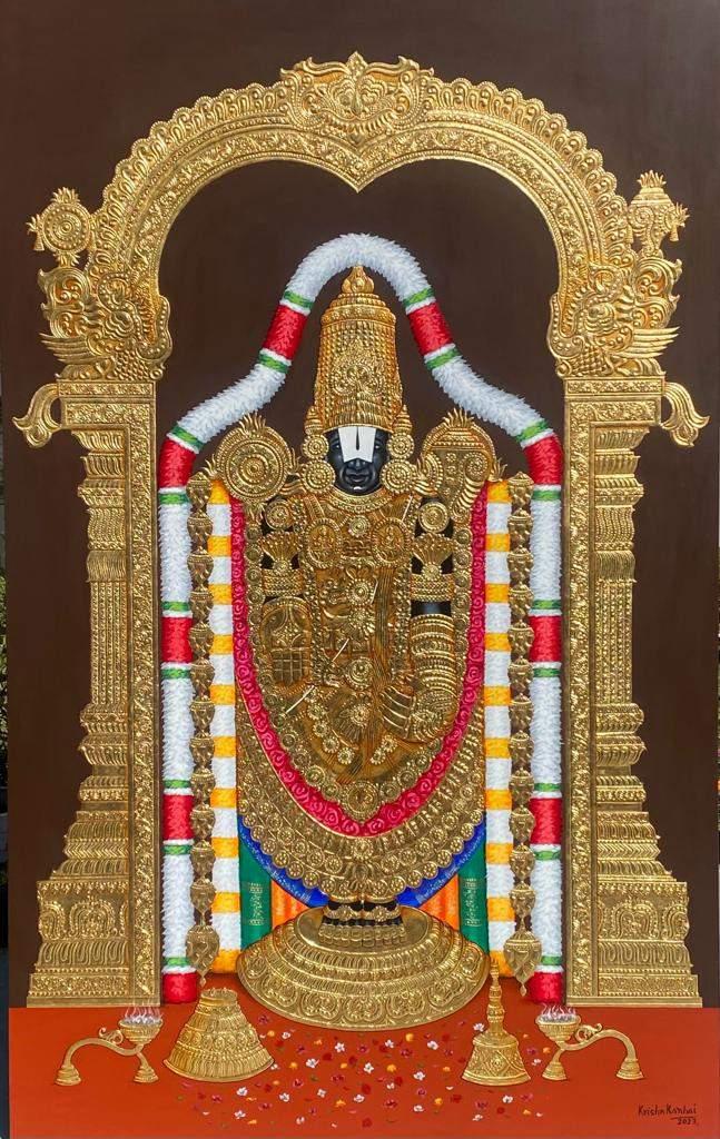 “To be true, it all began after seeing my father (Kanhai Chitrakar). And as a son of a renowned artist, my friends at the school used to push me to draw something on the blackboard , ” Says Mr Kanhai. Notably, Krishn Kanhai’s Father Padma Shri Kanhai Chitrakur was also an acclaimed artist and a painter who pioneered an art form known as Kanhai gold Painting. Kanhai gold Paintings are somewhat like the wellloved Tanjore Paintings, but the Kanhai’s are proportionate, unlike the Tanjores, which feature short, stout figures. In addition, the Kanhai Paintingsn use only 24-carat Pure gold, which is applied more liberally than the fine-touch gold typically, used in other Indian paintings.