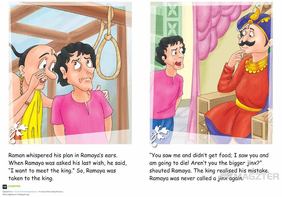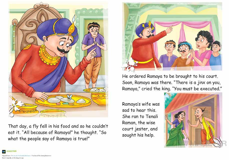 A TO Z INDIA NOVEMBER 2022 PAGE 22 இராைமயாைவ தன� நதிமனறததிற� அைழத� வர மனனர உததரவிடடார. உடேன இராைமயா அங� வநதார. "உனனிடம ஒ� �ரதிரஷடம இ�ககிற�, இராைமயா!", என� மனனர ேகாபபபடடார; "உனைன ��ககிலிட ேவண�ம" எனறார அவர. �ரஅதிஷடசாலி ெதனாலி இராமன கைதகள: ஆதிததியன அன� மனனர உணவில " ஈ " ஒன� வி�நததால, அவரால அைத உணண ��யவிலைல. "எலலாம இராைமயா தான காரணம!", என� அவர நிைனததார. "அபப�யானால, இராைமயாைவப பறறி மககள ெசாலவ� உணைமதான!" என� மனனர எணணினார. ஒ� காலததில, விஜயநகரததில இராைமயா எனற ஒ�வர வாழந� வநதார. மககள அவ�க� ஒ� �ரதிரஷடம இ�பபதாக நமபினர, ேம�ம அவ�டன ேப�வைதேயா அலல� அவர� �கதைதப பாரபபைதேயா தவிரததனர. மனனர இராைமயாவின ம� இரககபபட� உணைமையக கணடறிய வி�மபினார. அதனால, ஒ� நாள காைலயில இராைமயாைவ �தலில சநதிததார.