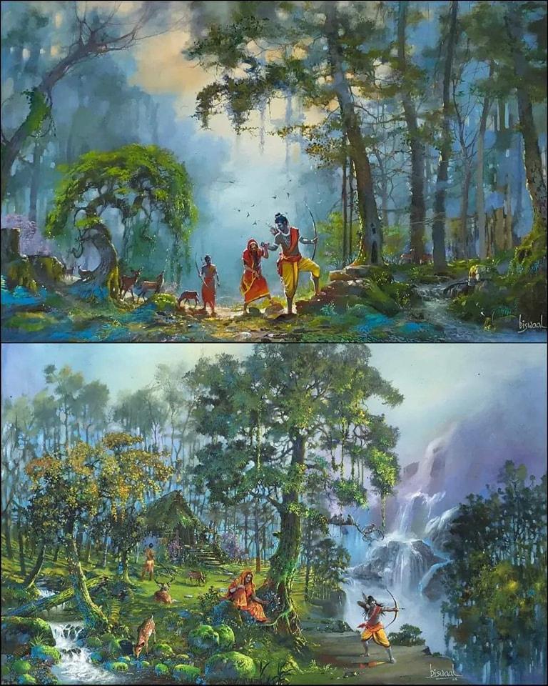 King Rama had banished his pregnant wife Sita, and sent her away to live in the forest, where she her was brought by Lakshmana and Hanuman and left in the then forest village of Pulpalli in the hermita ge of Valmiki. The Sita idol here is known as Jadayattakavu Amma or Chedathinkavu. It is believed that Lava and Kusha were born here in Valmiki Ashrama and grew up in this place under the tutelage of the sage Valmiki. The main shrine here is dedicated to Sita and flanked by shrines of her sons, Lava and Kusha (known locally as Murikannmar).