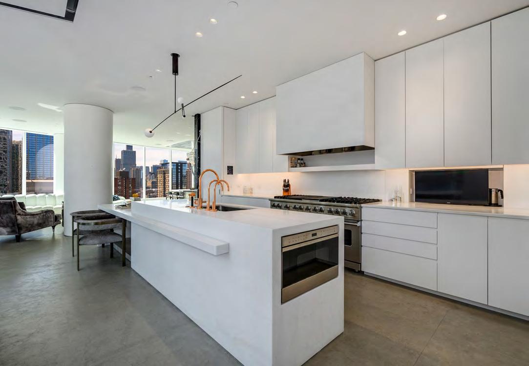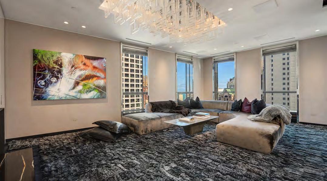 This one-of-a-kind 3/4 floor home at 30 W Oak offers luxurious living with truly unbelievable views and outdoor space. Completely redesigned by interior designer Kara Mann and builder Rick Juneau, with absolutely no detailed spared. 10’ high ceilings, heated concrete flooring, and panoramic city views compliment wide-open living areas, creating the perfect space to live and entertain. The main living space features a completely custom free-floating marble and steel bar area featuring an ice maker, supplemental Miele dishwasher, and sliding doors concealing additional bar storage. A gas fireplace with a floor-to ceiling marble surround makes a statement as the focal point and doubles as separation from the office area. The completely custom white kitchen offers top of the line appliances including a double Viking, 6 burners, a grill, and a griddle, an additional ice maker, and chic copper fixtures. There is also a built-in breakfast table for informal dining. All of this space opens onto the spacious, east-facing terrace with phenomenal lake views and city views. Adjacent to the kitchen is a family/media room with surround sound, beautiful marble fireplace with window sills to match, and east and north exposures for more great views. A butler pantry area is located just outside of this room. The primary bedroom is a true show stopper offering a gallery hallway with access to two dressing rooms, two linen closets, and the most luxurious black and white marble bath with separate steam shower with sound, marble tub, and dual full height medicine cabinets. A second bedroom suite has a white marble bath and a spacious, windowed walk-in closet. The large laundry room has dual LG washers and dryers and amazing storage. A large wine room and marble powder room complete this fabulous city home. Premiere parking for three cars! This is a remarkable Gold Coast location walking distance to all of the best shopping and dining there is.