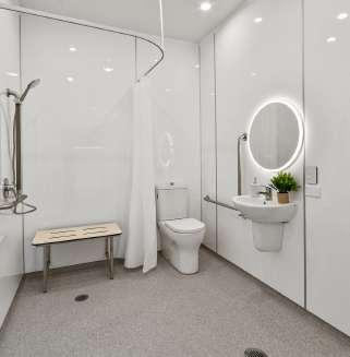 Each bathroom features a mounted shower seat, non-slip flooring and plenty of space to manoeuvre