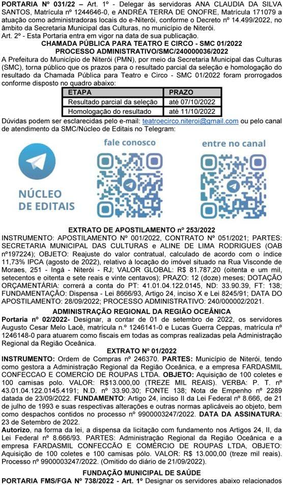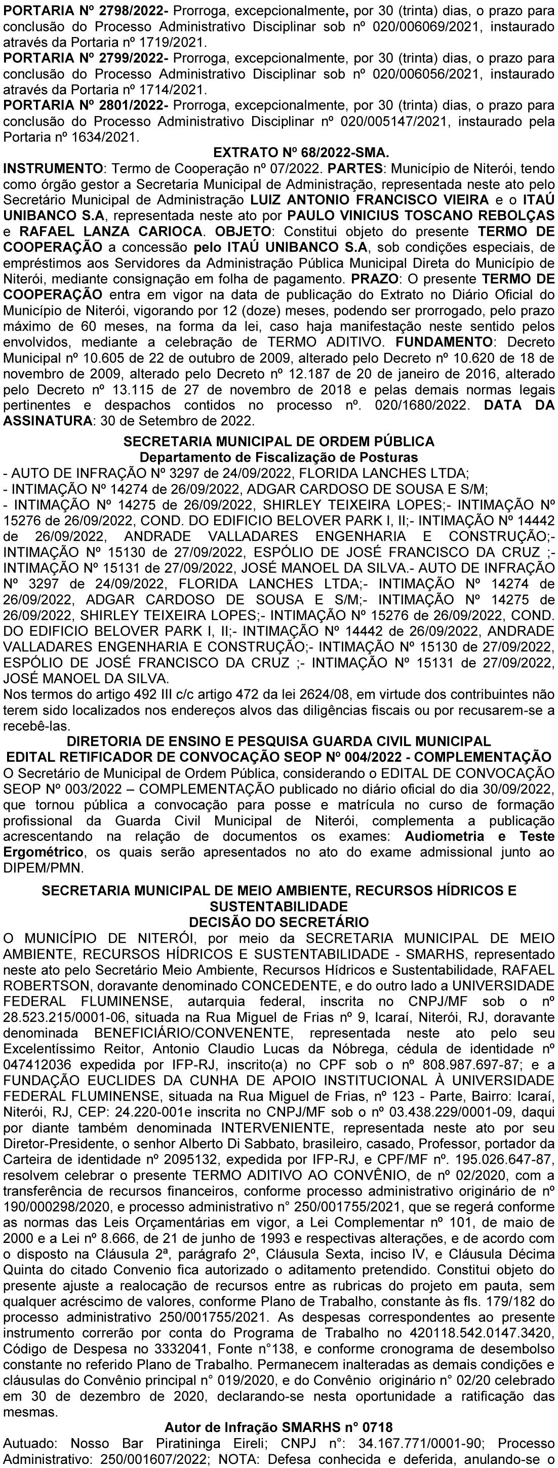 Afixe-se, registre-se e publique-se. Instituto de Previdência dos Servidores Municipais de Rio Bonito. Rio Bonito, 28 de setembro de 2022