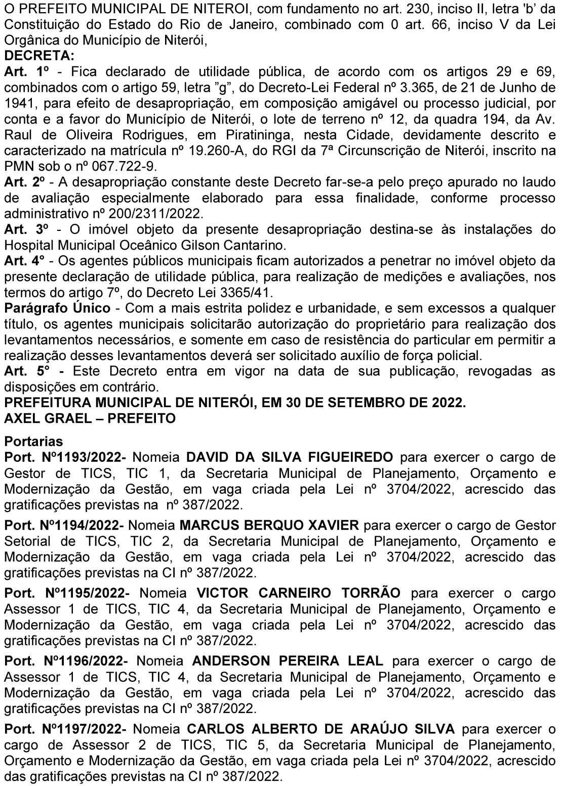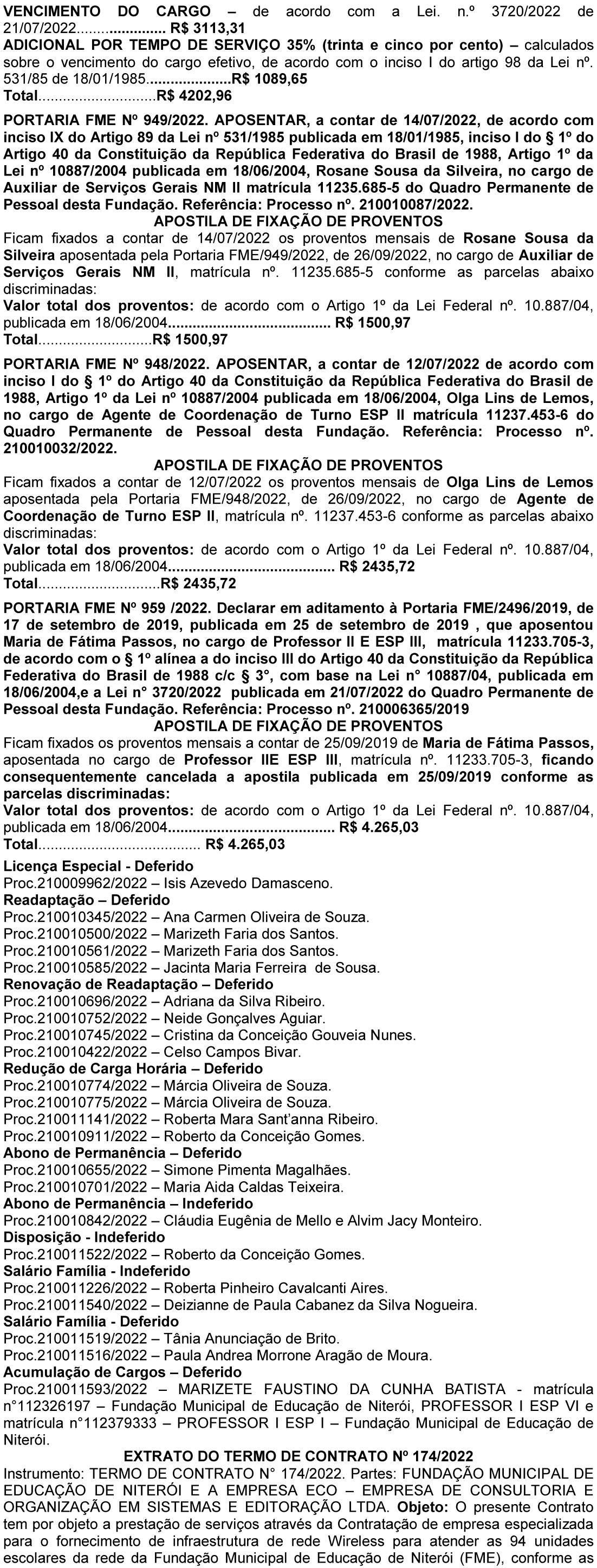 Art. 3º - Esta Portaria entrará em vigor na data de sua publicação com data inicial de pagamento (DIP) a contar de 01/10/2022. Afixe-se, registre-se e publique-se.