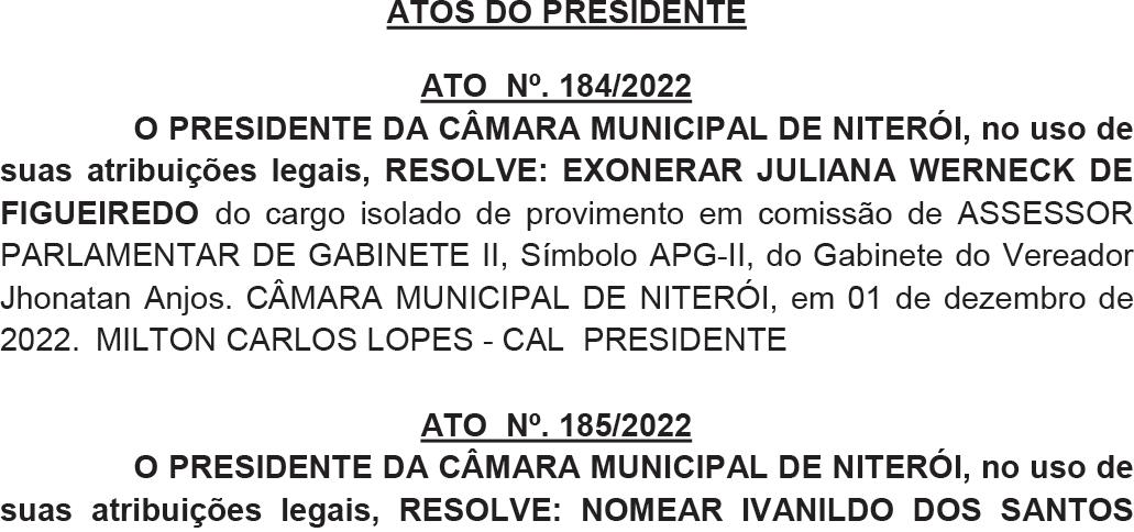Rio Bonito, em 01 de dezembro de 2022. Julio Aguiar Pimentel Secretário Municipal de Administração Matr. 8961425