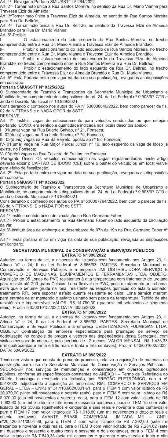 REPRESENTANTE LEGAL: Paulo Gustavo Brandão Moraes – SECRETÁ RIO M. OBRAS E SERVIÇOS PÚBLICOS Empresa: Comercial Preferido LTDA OBJETO: Fornecimento de gêneros alimentícios para a SMOSP PROCESSO Nº: 2047/2022 CONTRATO SMOSP Nº: 067/2022.