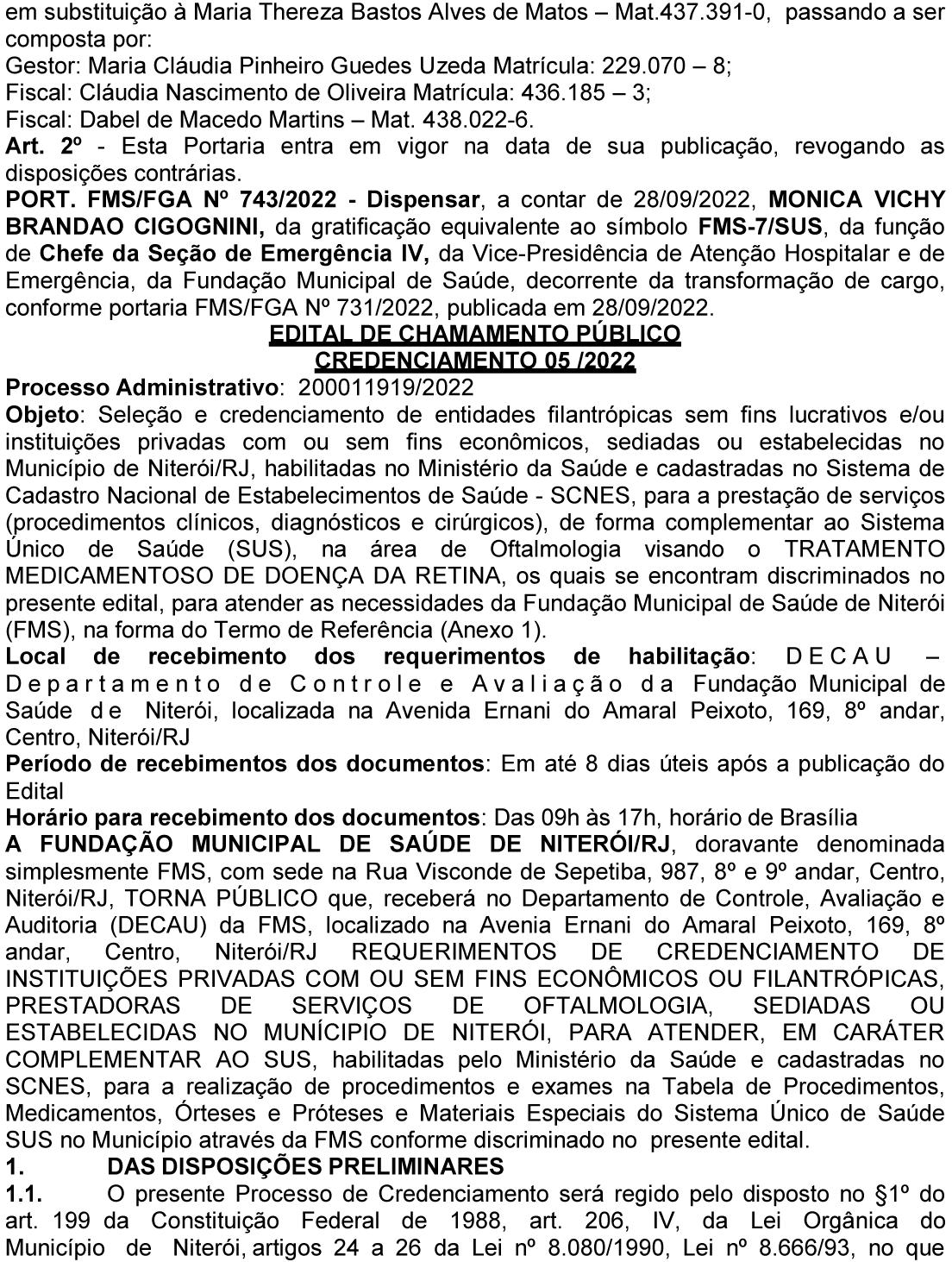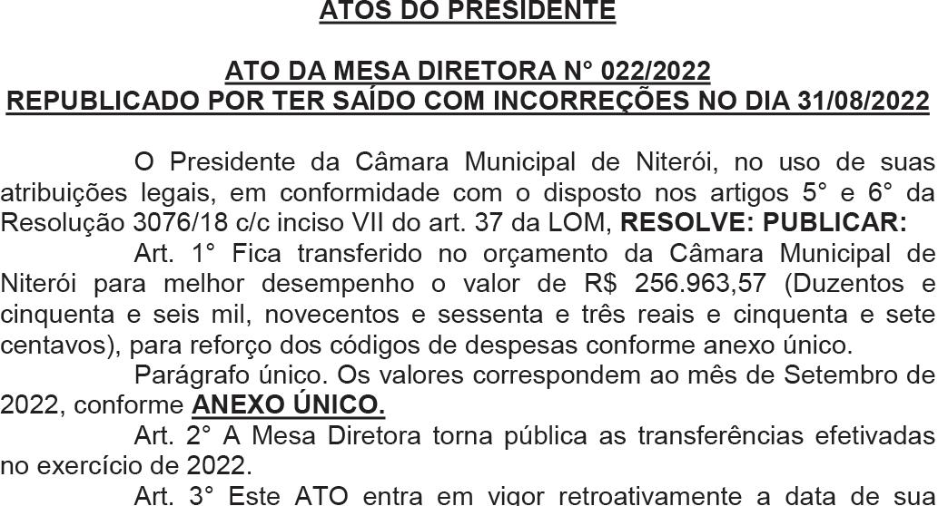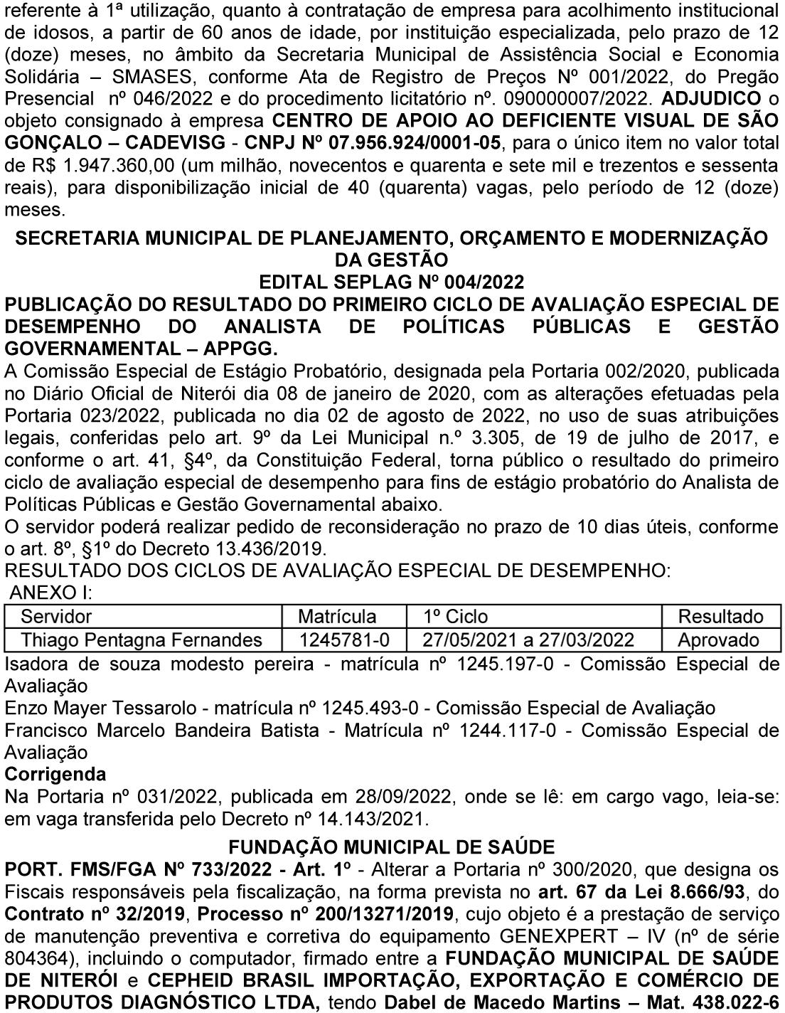 PROCESSO ADMINISTRATIVO Nº: 2656/2022, publicado no jornal A Tribuna Edição 35.765, em 22 de setembro de 2022 Página 08
