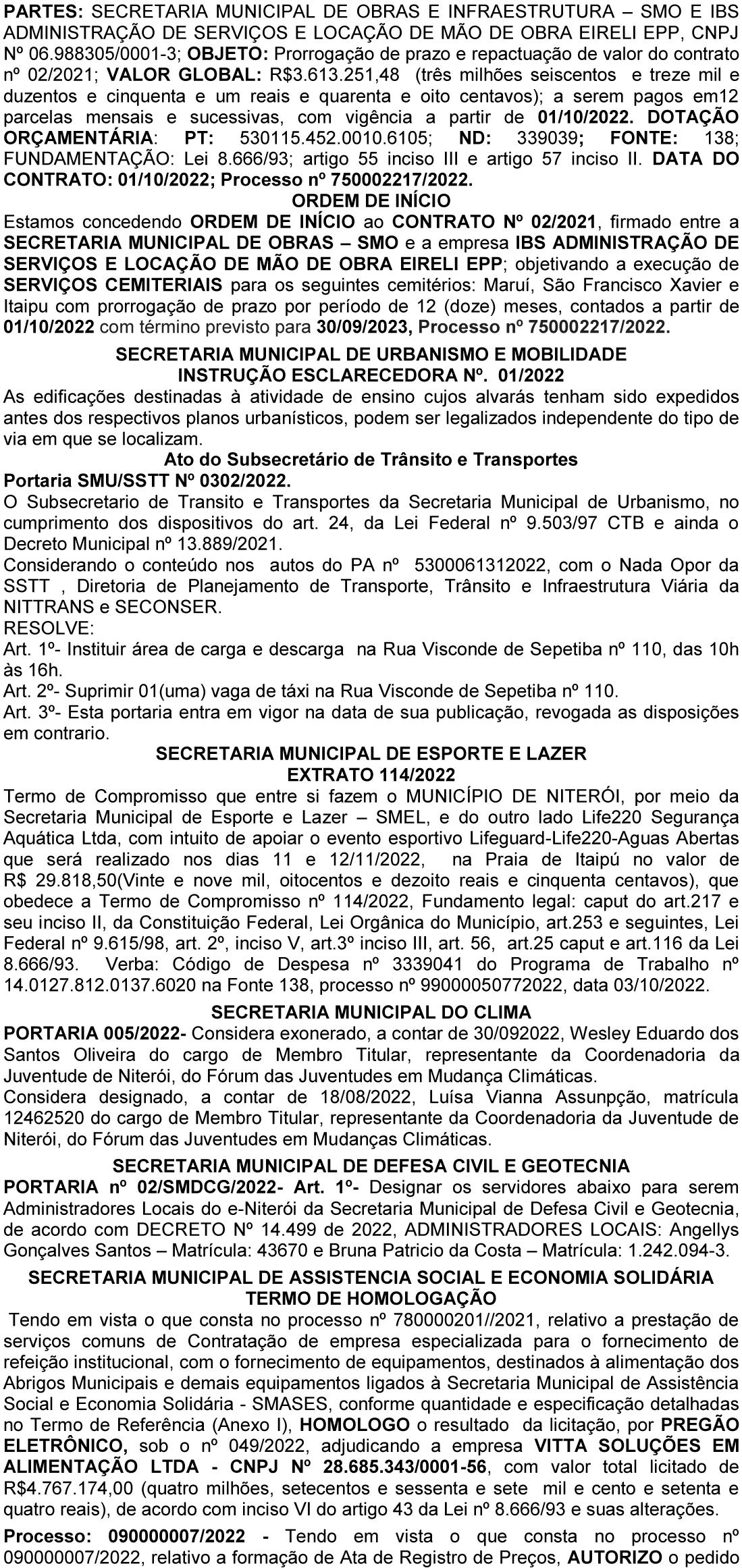 O Secretário de Segurança e Ordem Pública no uso de suas atribuições legais, Resolve TORNAR SEM EFEITO o Contrato Administrativo nº 005/ 2022, processo nº 3928/2022, extrato publicado no Jornal A Tribuna, publicado no dia 27/28 e 29 de agosto de 2022, Edição nº 35.748, pag. 10. Rogério de Oliveira de Góes Mat.8960747