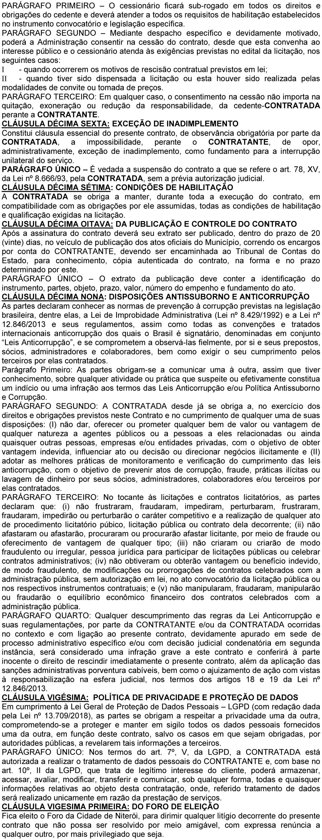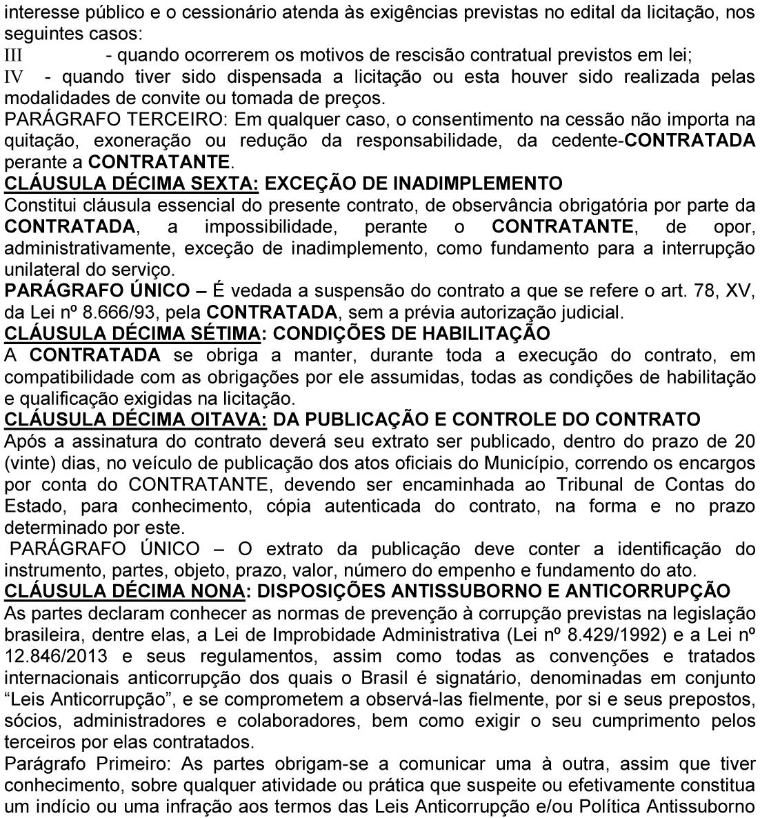 CLÁUSULA QUARTA – DA RATIFICAÇÃO 4.1 Permanecem inalteradas as demais cláusulas do contrato ora aditado.