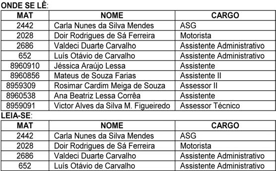 ERRATA DE PUBLICAÇÃO DE CONTRATO