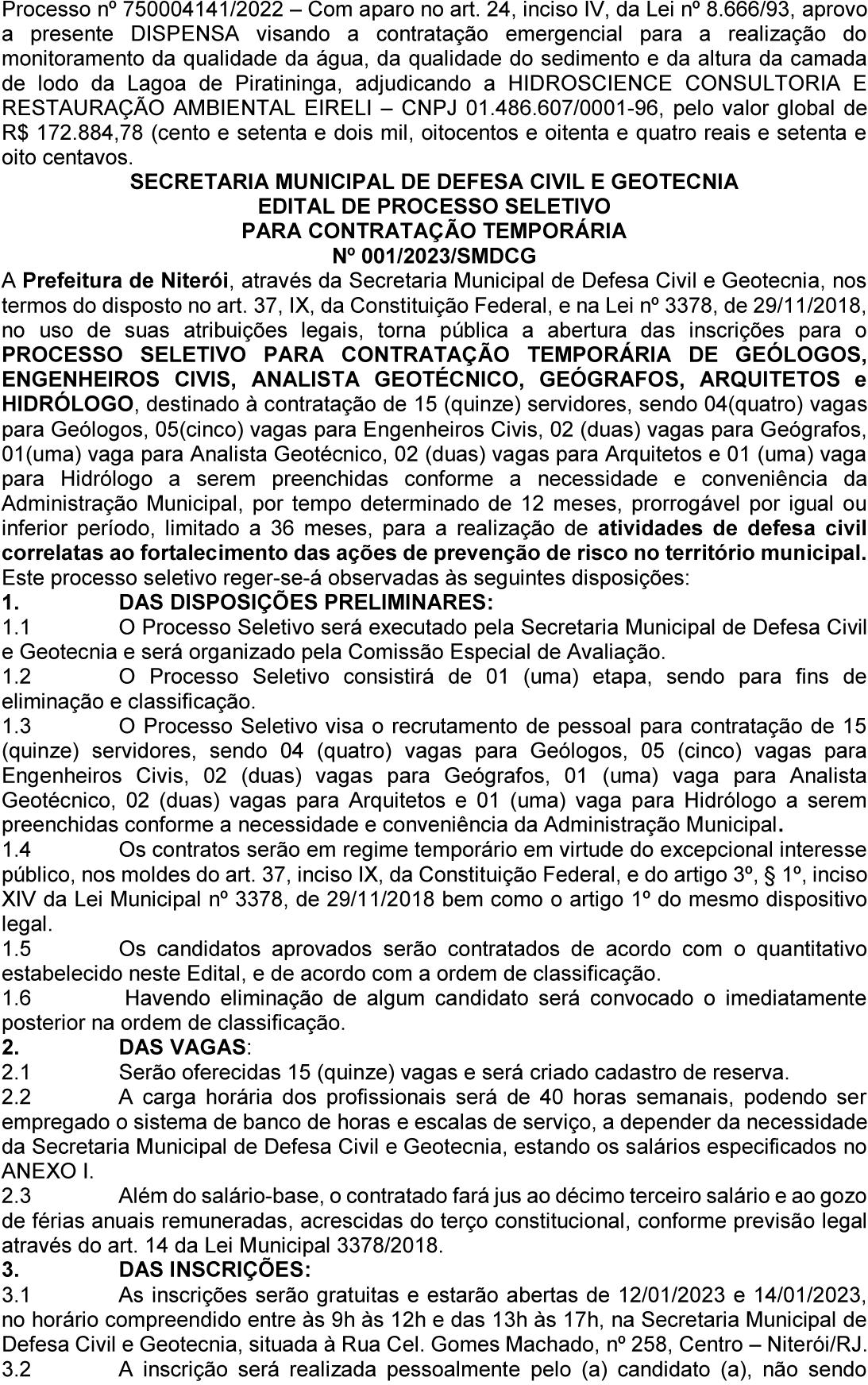 Pelo presente Edital convocamos todos os trabalhadores da Categoria do Mobiliário de Niterói para tomarem parte da Assembléia Geral Ordinária que se realizará no dia 18 de janeiro de 2023 ás 17 horas em 1ª Convocação, caso não haja número suficiente, haverá uma 2ª chamada ás 18 horas com qualquer número de presentes, no endereço á Av. Ernani do Amaral Peixoto, 455 –sala 502 - Centro – Niterói – RJ, para deliberar a seguinte ordem do dia: 1º Leitura, discussão e aprovação da Ata da Assembléia anterior; 2º - Apresentar e discutir as reivindicações do sindicato laboral (STICM-NITERÓI) com vistas na elaboração da CCT – Convenção Coletiva de Trabalho para o período de 2023/2024; 3º Outorga de poderes para diretoria instaurar Dissídio Coletivo caso não haja acordo com o Sindicato Empresarial; 4º Pedir autorização Prévia e expressa ao trabalhador para que seja efetuado o desconto da contribuição sindical; 5º Fixar o percentual da Contribuição Associativa mensal na Convenção Coletiva de Trabalho 2023/2024.