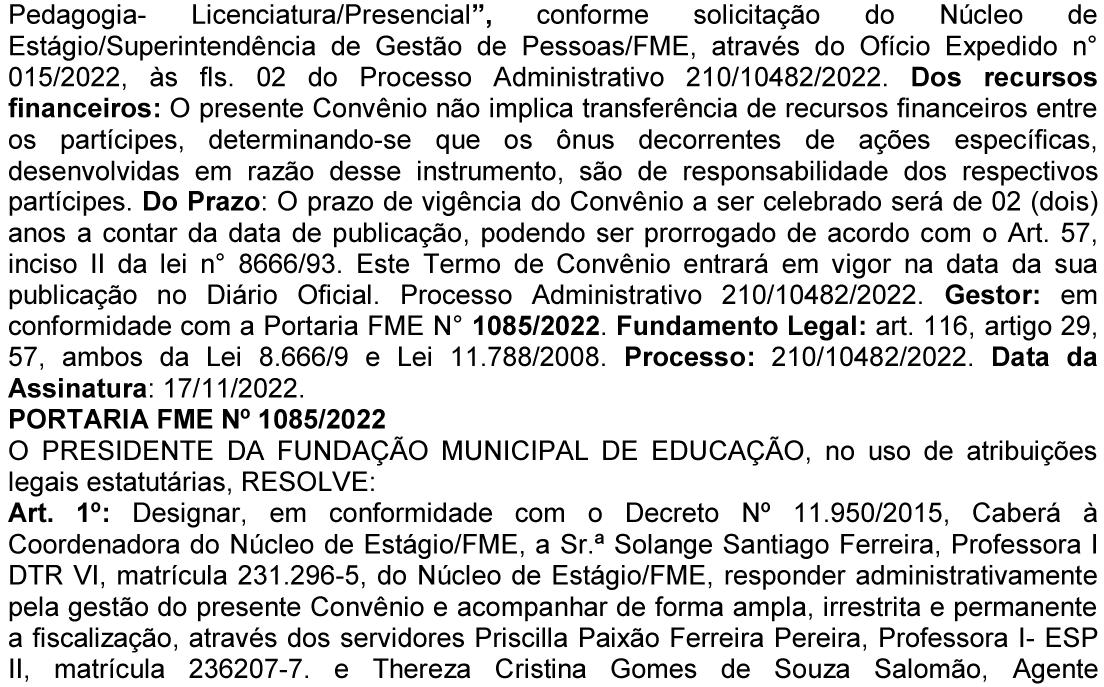 AMARAL DA SILVA, Matrícula nº. 1189, no cargo de ORIENTADOR EDUCACIONAL, 2135 (dois mil cento e trinta e cinco) dias, o equivalente à 05(cinco) anos, 10 (dez) meses e 10(dez) dias, constante na Certidão de Tempo de Contribuição do INSS- Instituto Nacional do Seguro Social Protocolo 17025050.1.00567/22-1, com fulcro no Art. 76, Inc. IV da Lei 1822/2013 combinado com a Art. 201, § 9º da Constituição Federal. Registre-se e Publique-se, Prefeitura Municipal de Rio Bonito, em 01 de Dezembro de 2022.