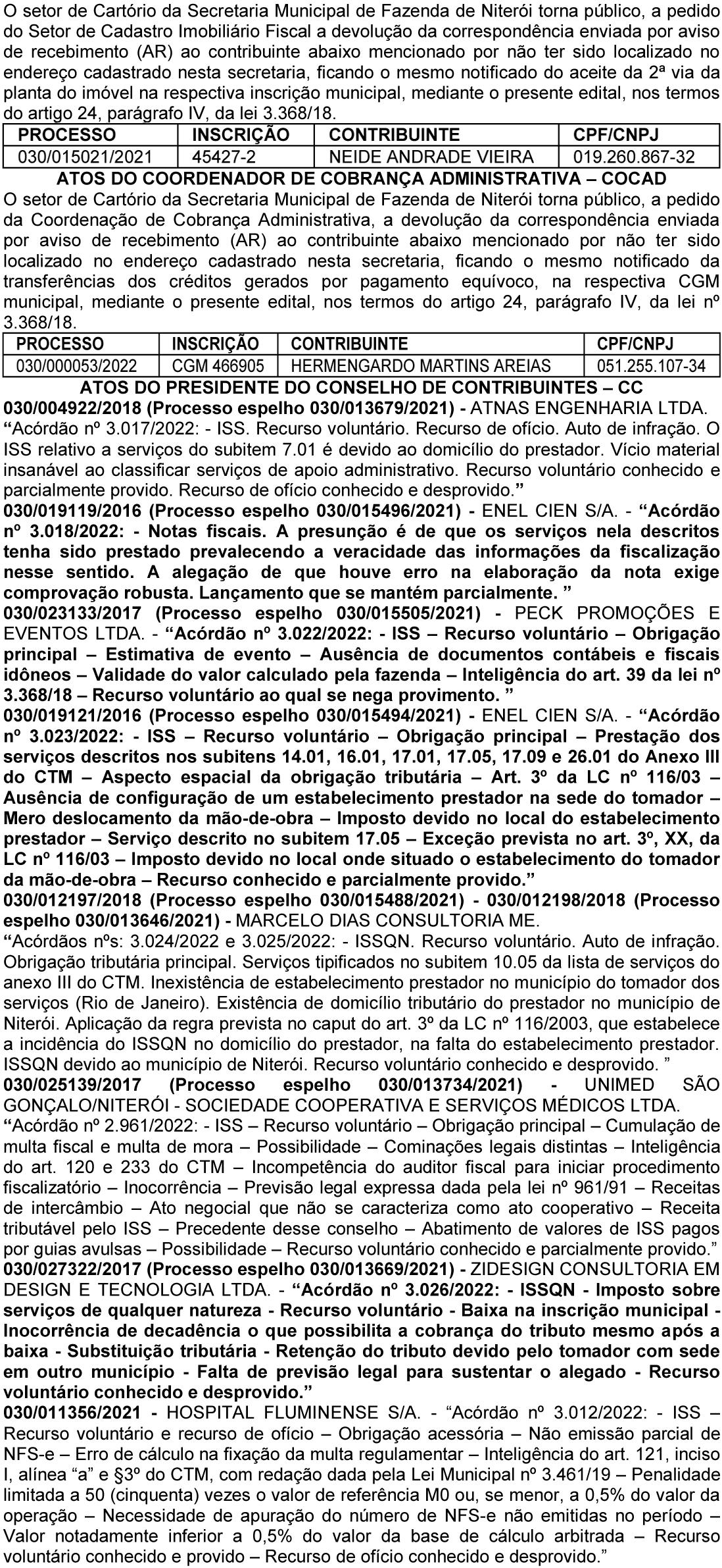 JOURDAN AMÓRA Fundado em 26 Novembro de 1936em de 1936Fundado em 26 Novembro de 1936em de 1936 A TRIBUNA é uma publicação da Editora Esquema Ltda CNPJ: 30.108.948/0001-26 www.atribunarj.com.br DiretoriaDiretoria Diretoria: Jourdan Amóra Eva de Lourdes Santana Amóra Gustavo Santana Amóra Editor:Editor: Editor: Marcelo Macedo Soares EndereçoEndereço Endereço: Rua Professor Heitor Carrilho, 350F, Centro, Niterói - RJ - Cep: 24.030-230 TT Telefelef elefelef elefones: ones: ones: (021) 2719-1 886 / 2621-4986 Whatsapp: Whatsapp: (021) 97848-4642 Assinatura: assinaturaatribuna@gmail.com TT T rimestral rimestral R$ 126,00 126,00R$ 126,00 126,00 Semestral Semestral R$ 252,00 252,00 AnualAnual AnualAnual R$ 504,00 504,00ADJORI-RJ