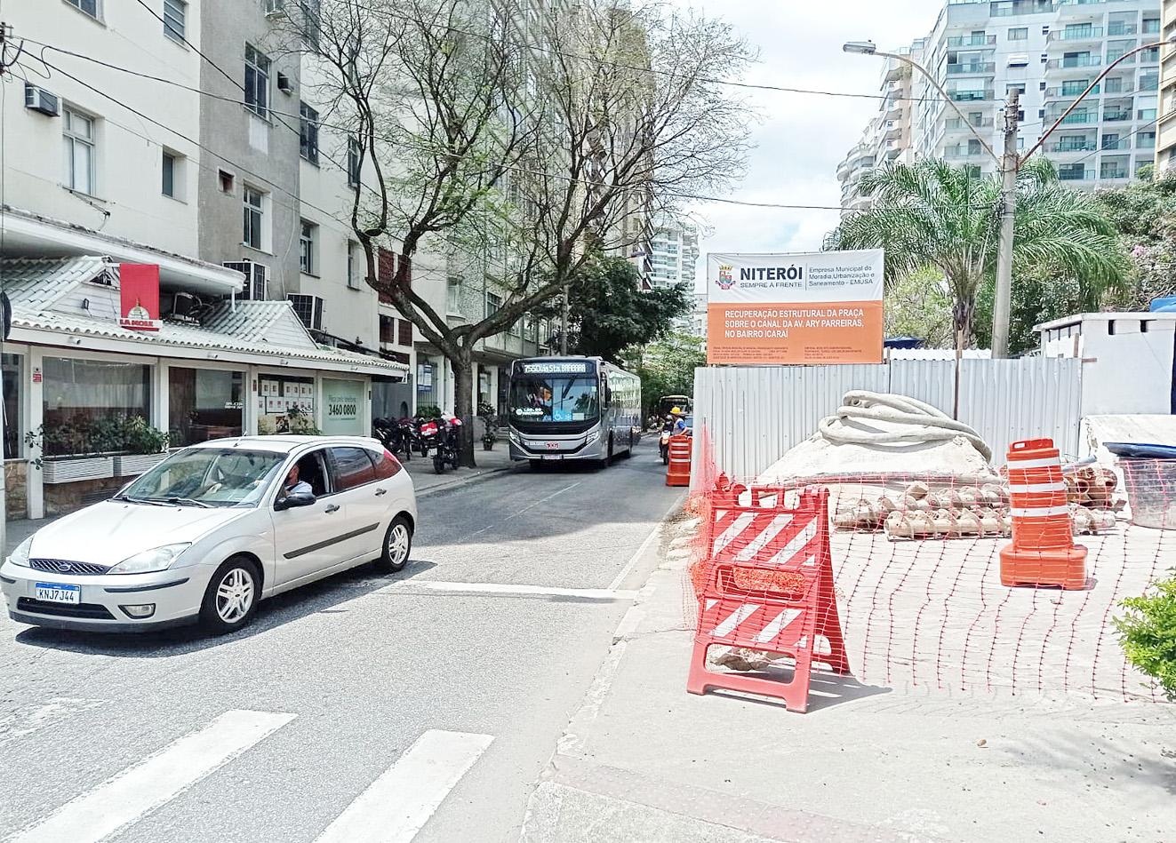 De acordo com a Prefeitura, a previsão era que a pista sentido Praia de Icaraí, entre a praia e a Rua Ator Paulo Gustavo, tivesse o tráfego interrompido, logo no início da manhã, para obras de recuperação da estrutura da praça que ficava sobre o córrego, demolida recentemente.