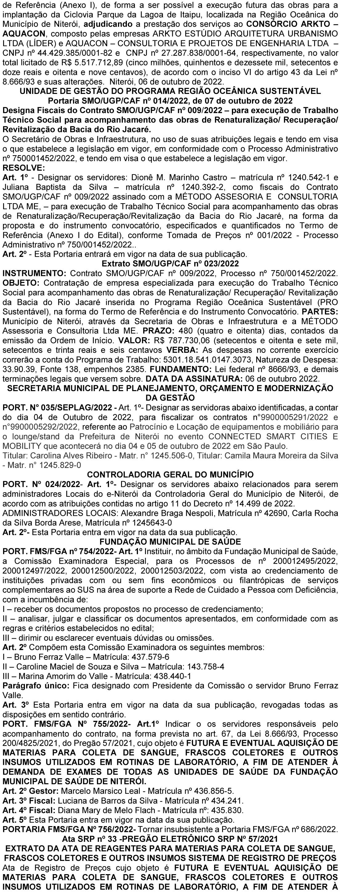 O SECRETÁRIO MUNICIPAL DE FAZENDA, no uso das atribuições que são conferidas pela legislação em vigor, nos termos do art. 48, §1º, III da Lei Orgânica Municipal e da Portaria nº 218/2021;