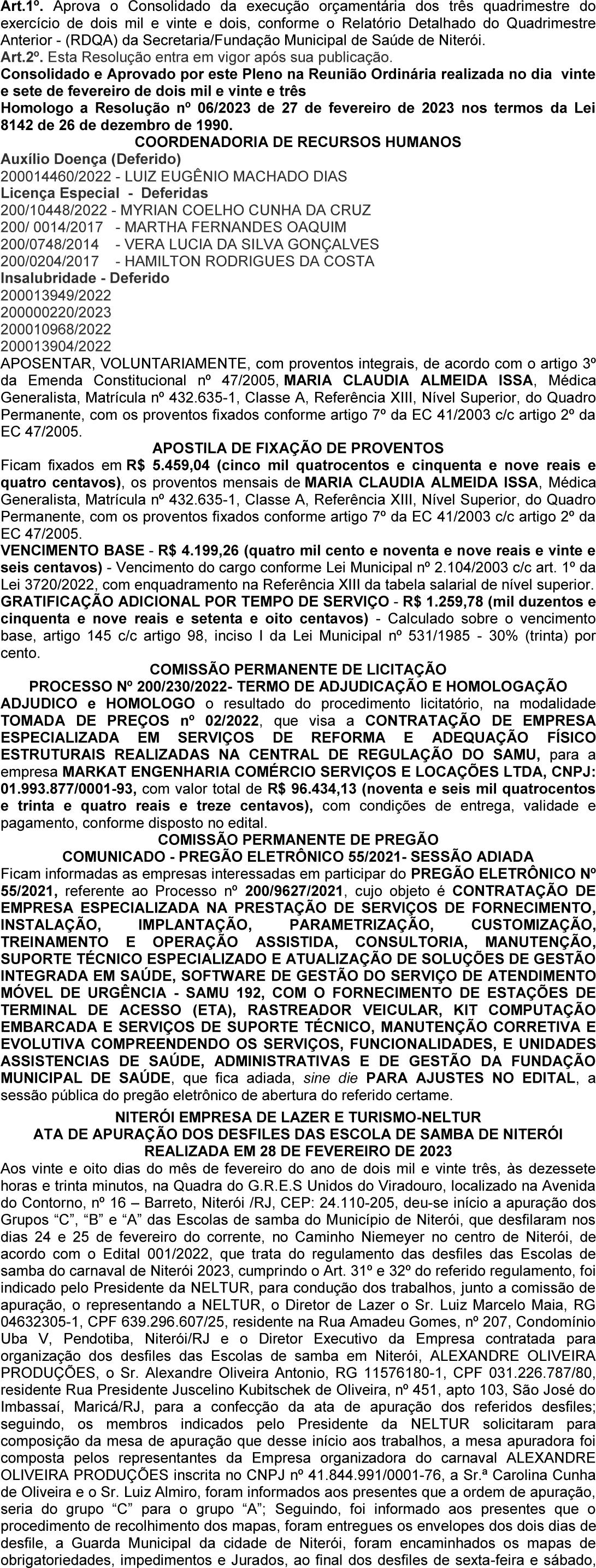 2 QUINTA-FEIRA , 9 DE MARÇO DE 2023 Fundado em 26 Novembro de 1936 Fundado Novembro de A TRIBUNA é uma publicação da Editora Esquema Ltda CNPJ: 30.108.948/0001-26 www.atribunarj.com.br www.atribunarj.com.br www.atribunarj.com.br DiretoriaDiretoria Diretoria: Jourdan Amóra Eva de Lourdes Santana Amóra Gustavo Santana Amóra Editor:Editor: Marcelo Macedo Soares EndereçoEndereço Endereço: Rua Prof essor Heitor Carrilho, 350F, Centro, Niterói - RJ - Cep: 24.030-230 TT Telefelef elefelef elefones: ones: ones: ones: (021) 2719-1886 / 2621-4986 Whatsapp: Whatsapp: (021) 97848-4642 Assinatura: assinaturaatribuna@gmail.com assinaturaatribuna@gmail.com assinaturaatribuna@gmail.com assinaturaatribuna@gmail.com TT TT Trimestralrimestral rimestralrimestral rimestral R$ 126,00 126,00 Semestral Semestral R$ 252,00 252,00 AnualAnual AnualAnual R$ 504,00 504,00 R$ 504,00 504,00 ADJORI-RJ