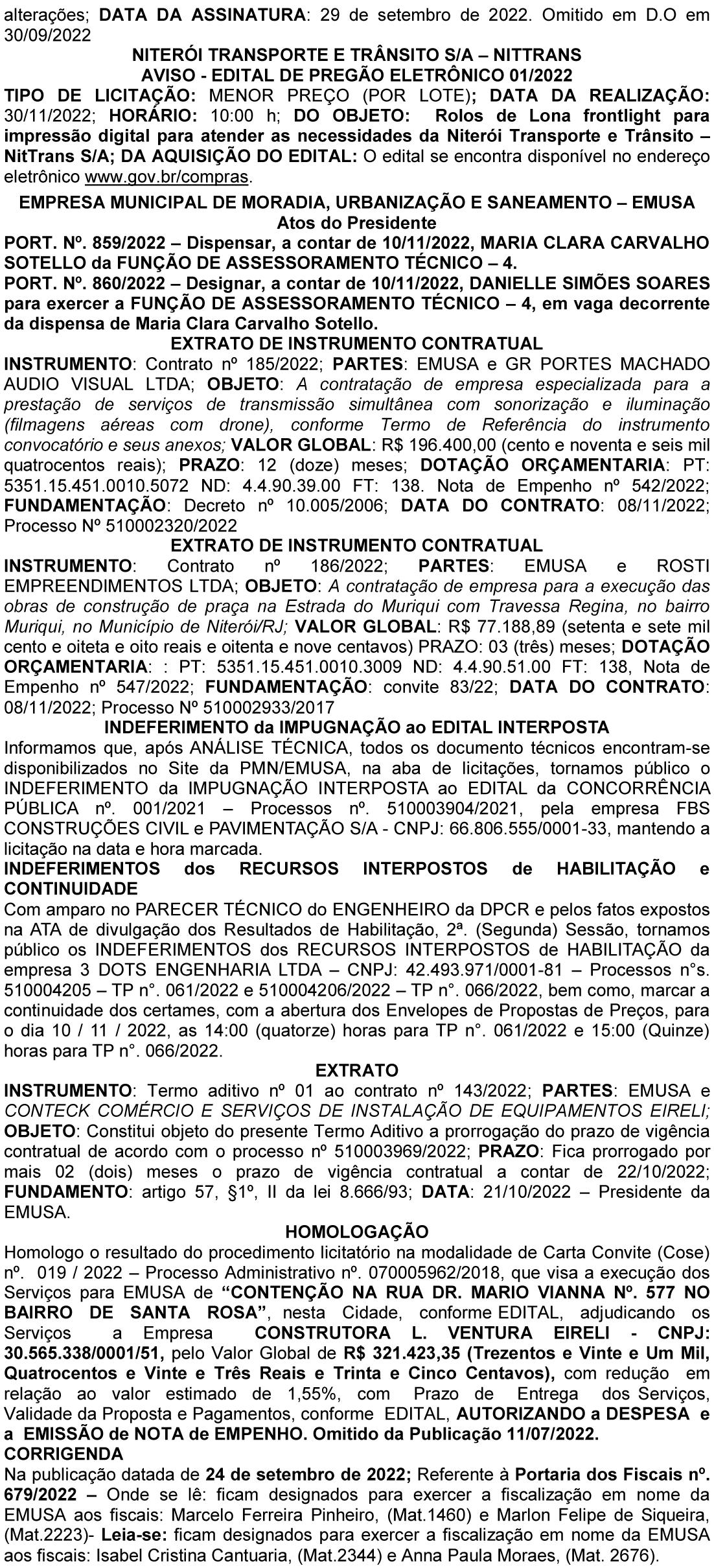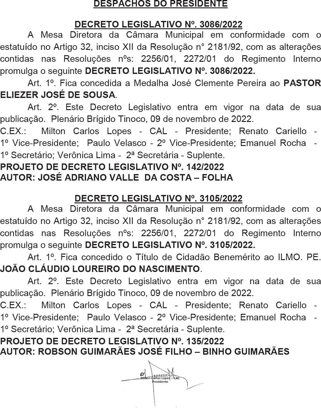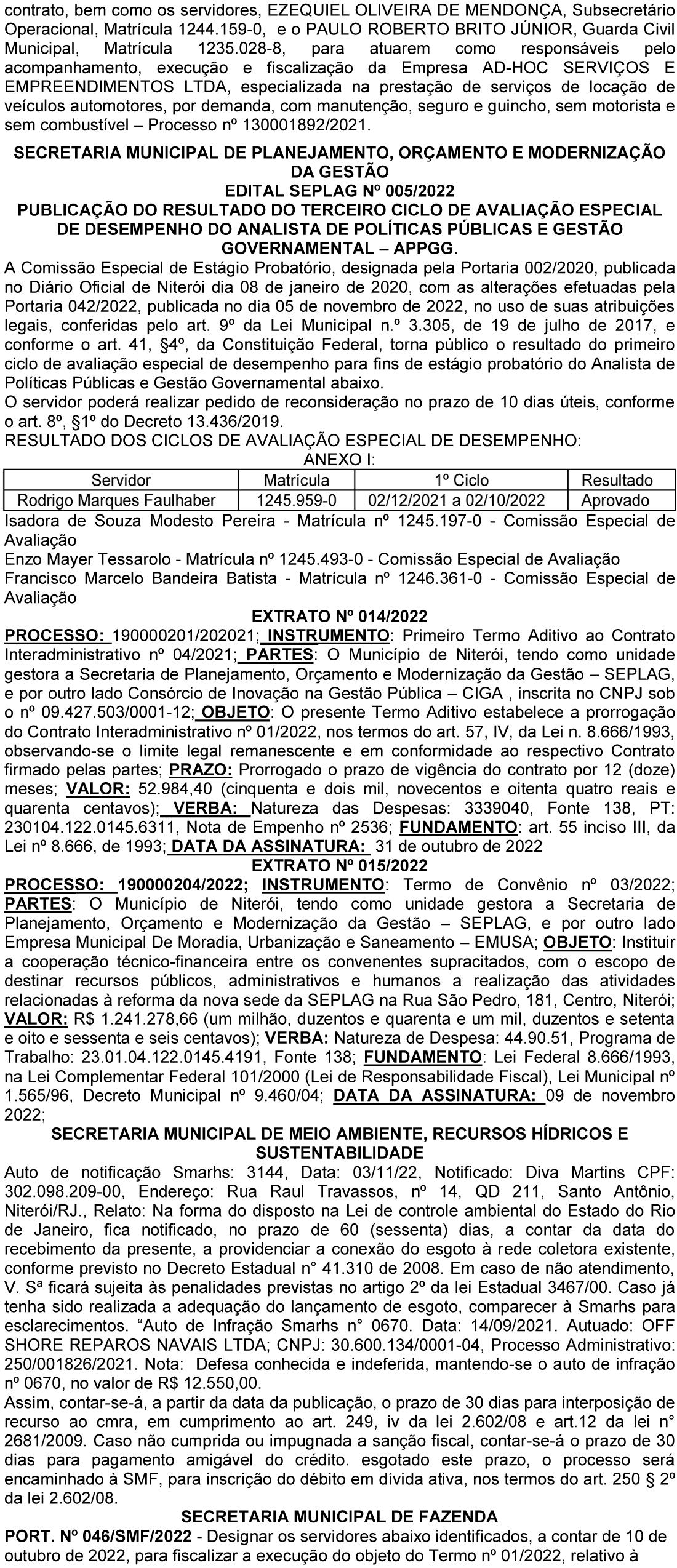 Prefeitura Municipal de Rio Bonito, 09 de novembro de 2022.