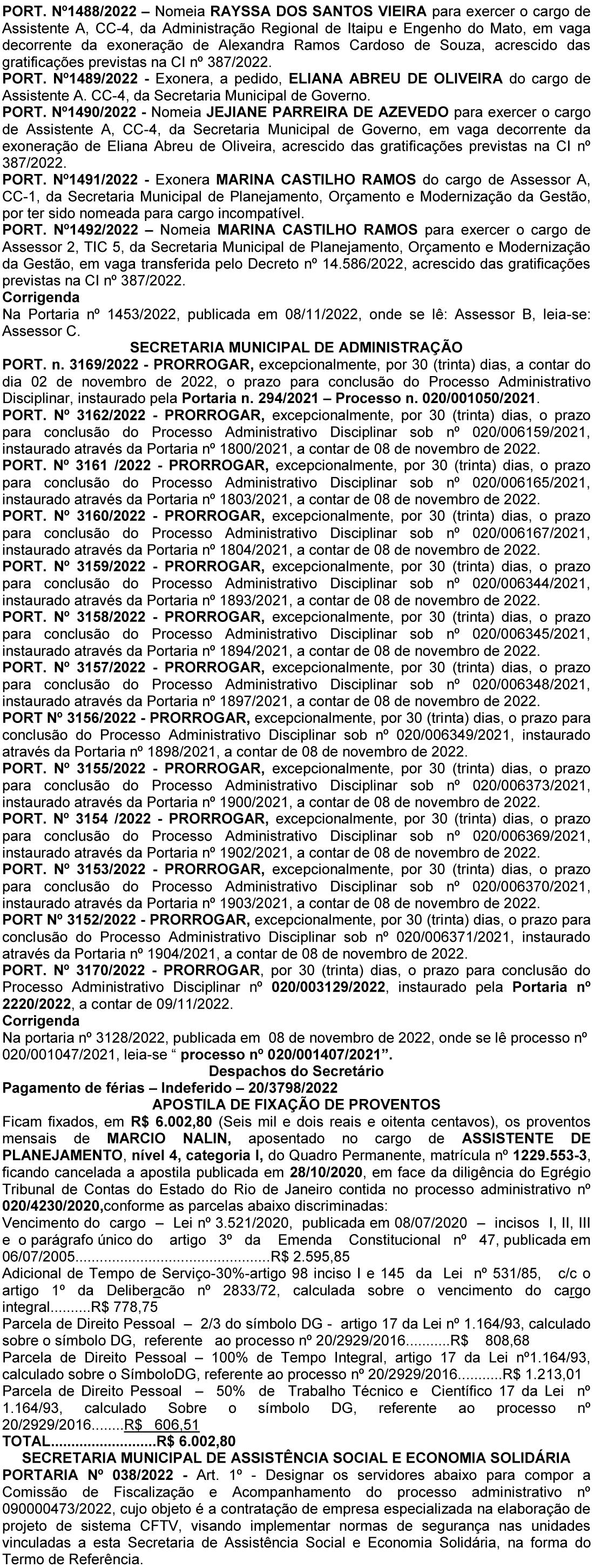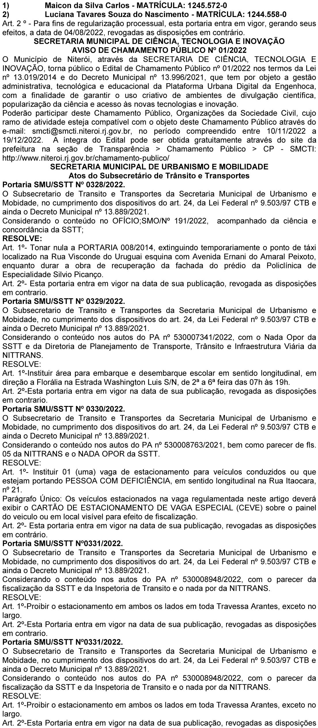 O Prefeito Municipal de Rio Bonito, Estado do Rio de Janeiro, no uso de suas atribuições legais, RESOLVE: Tornar sem efeito a Portaria nº 1538/2022 de 01 de novembro de 2022.