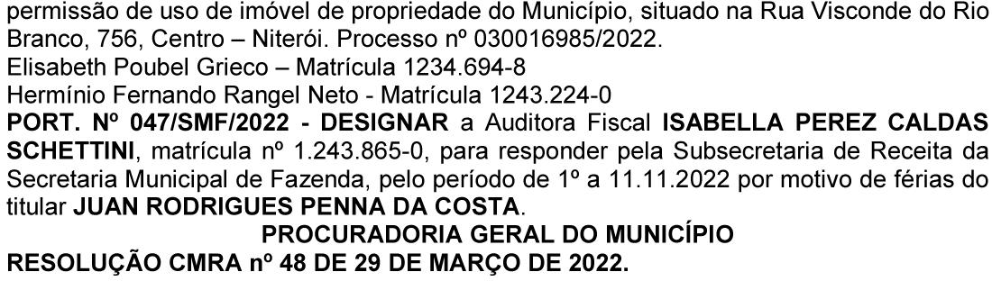 O Prefeito Municipal de Rio Bonito, Estado do Rio de Janeiro, no uso de suas atribuições legais, RESOLVE: NOMEAR a Sra. FERNANDA CARISTIATE PIMENTEL para o cargo em comissão de ASSESSOR, Símbolo DAS-2, a contar de 01 de novembro de 2022.