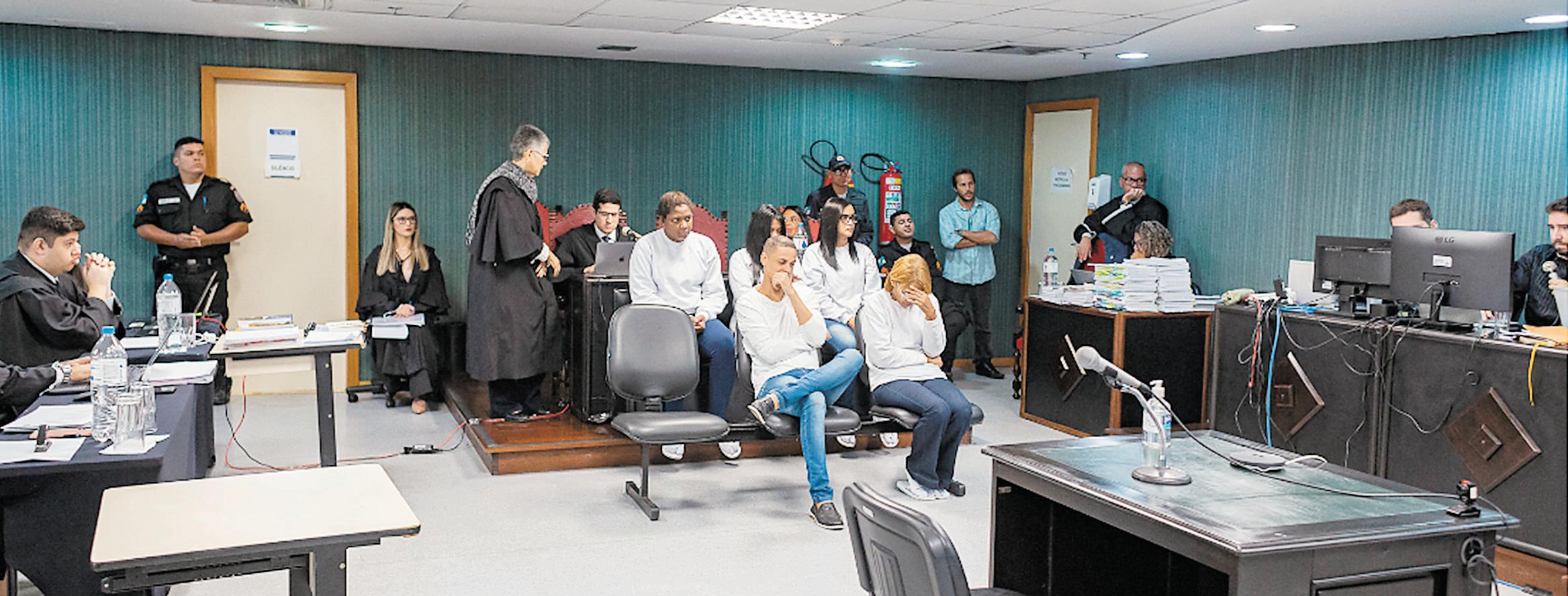 Além de Flordelis, estão no banco dos réus Simone dos Santos Rodrigues, filha biológica; André Luiz de Oliveira e Marzy Teixeira da Silva, filhos afetivos; e Rayane Oliveira, neta adotiva.