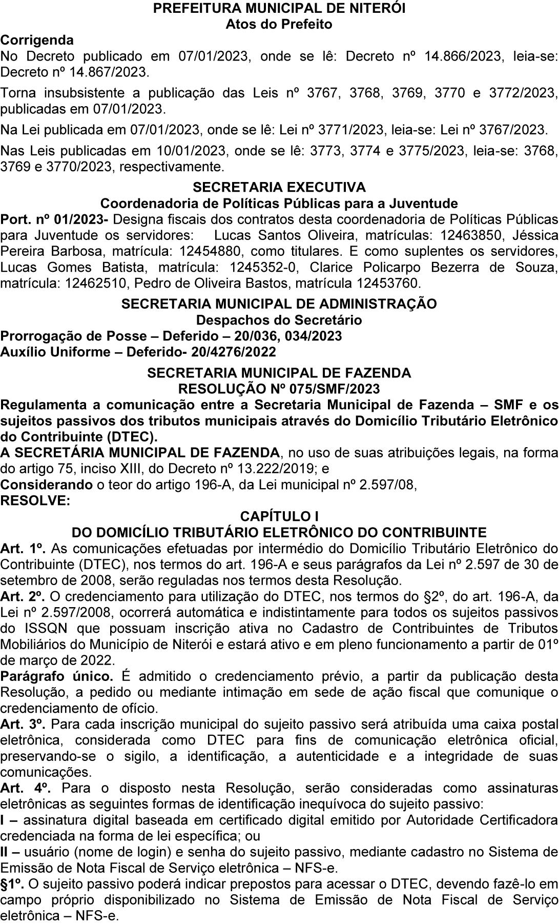 Rio Bonito, 10 de janeiro de 2023. Paulo Gustavo Brandão Moraes Secretário Municipal de Obras e Serviços Públicos Matr. 8959066